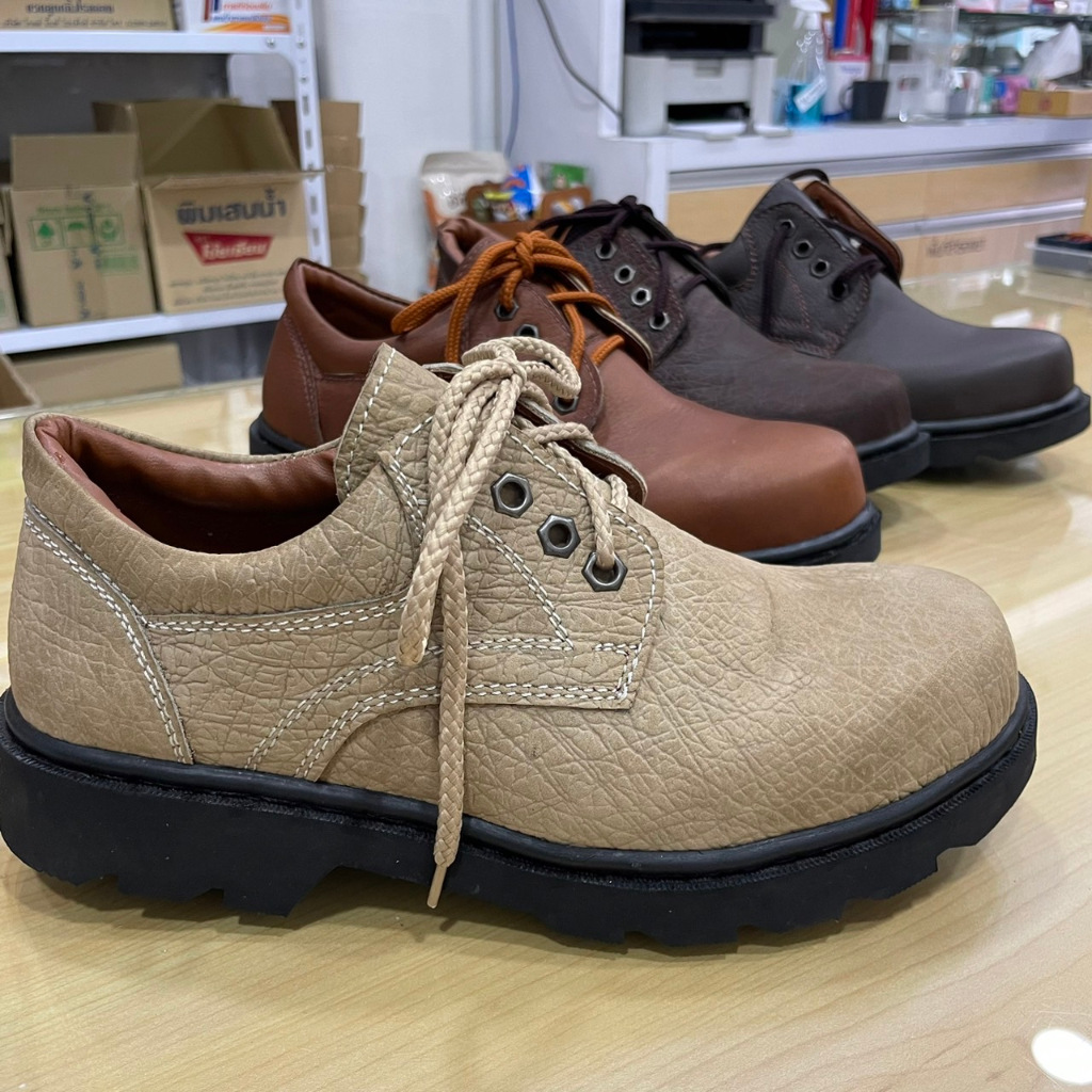 รองเท้าเซฟตี้ PANGOLIN รุ่น 0204U หนังแท้ ห้วเหล็ก กันลื่น น้ำมัน สารเคมี สีน้ำตาล, สีดำ (ตัวแทนจำหน่ายรายใหญ่)