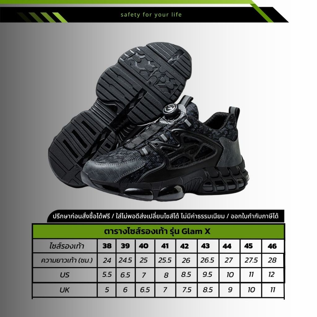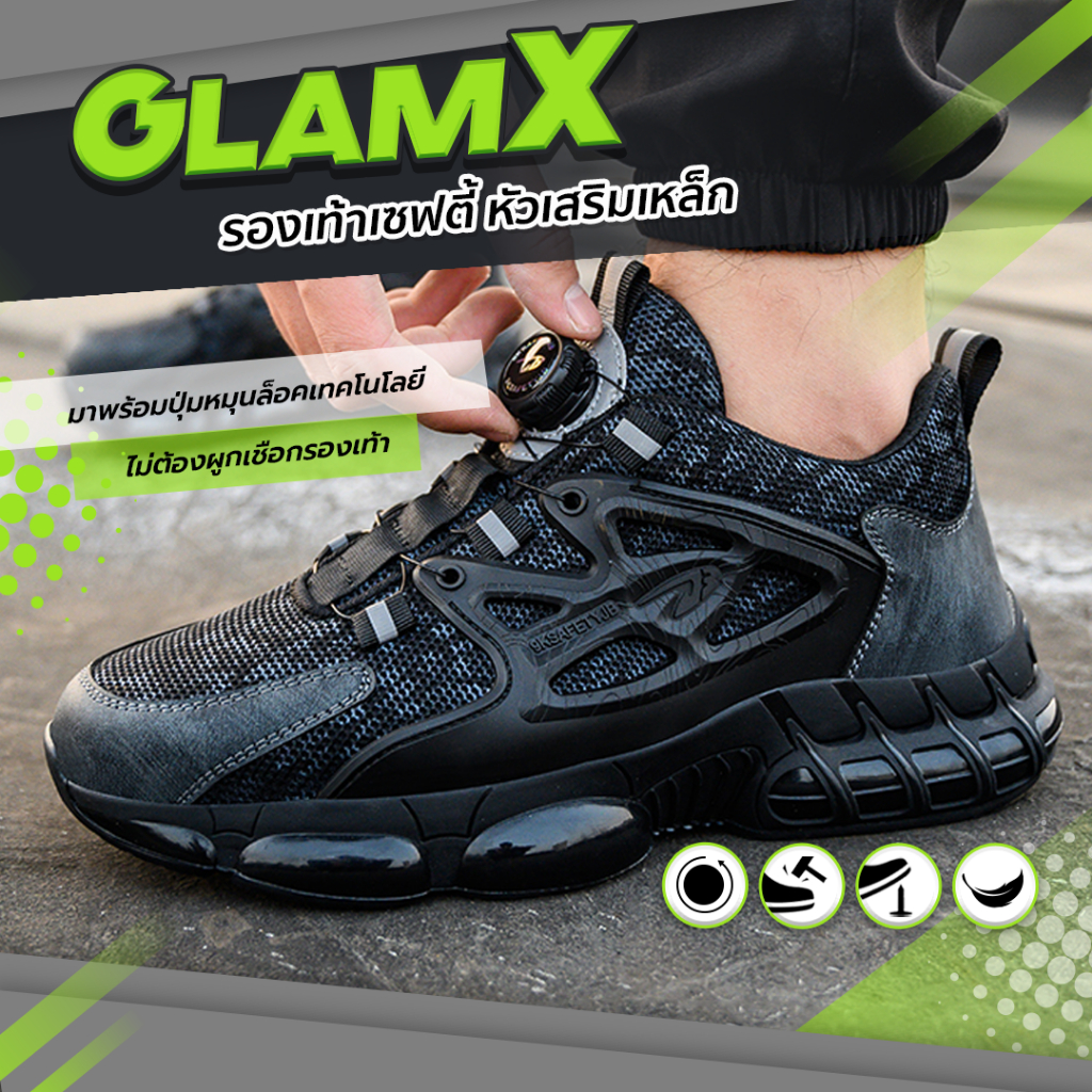 รองเท้าเสริมหัวเหล็ก (Safety Shoes) รุ่น Glam X พื้นกันลื่น ทนทาน ใส่สบาย 🔥