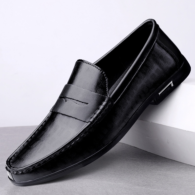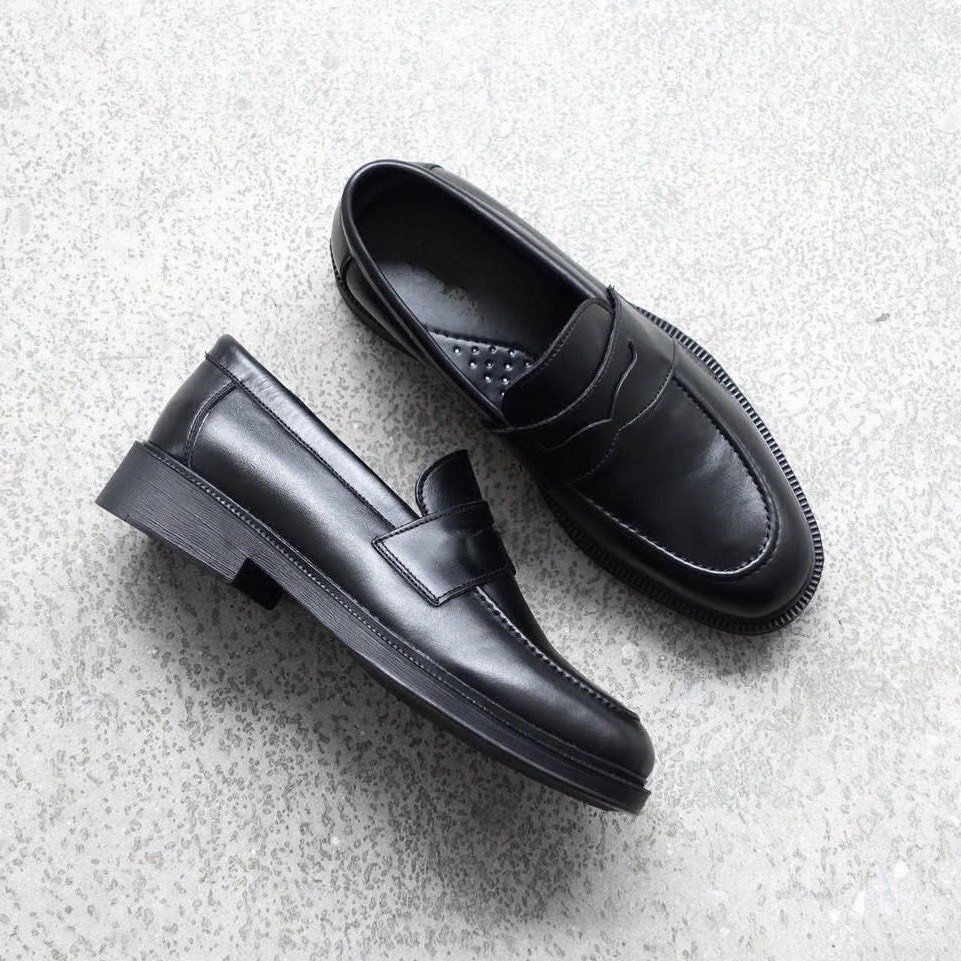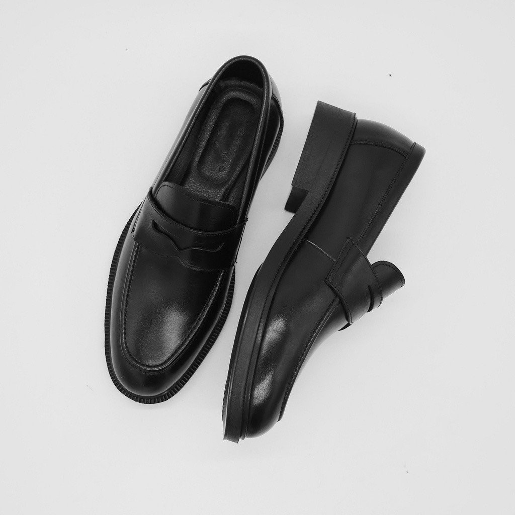 รองเท้าโลฟเฟอร์ Solid Rubber Sole สําหรับผู้ชาย Penny Loafer Black Classic Form