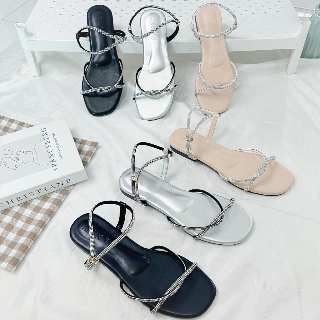 รองเท้าแฟชั่น แบรนด์ ARUN รุ่น AR2028 รองเท้าแตะ ดีไซน์รัดข้อ คาดเพชร v1