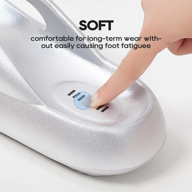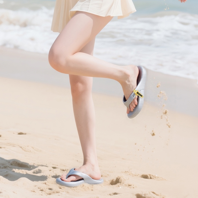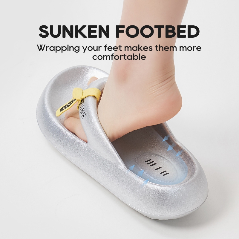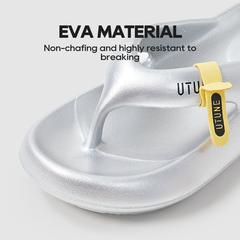 อูจูน ผู้ชายเงินรองเท้าแตะ พลิก ล้มเหลว นุ่มรองเท้าแตะแบนสีสดใสหนาลื่นยางชายหาดสไลด์สําหรับสุภาพสตรี 2025 ใหม่