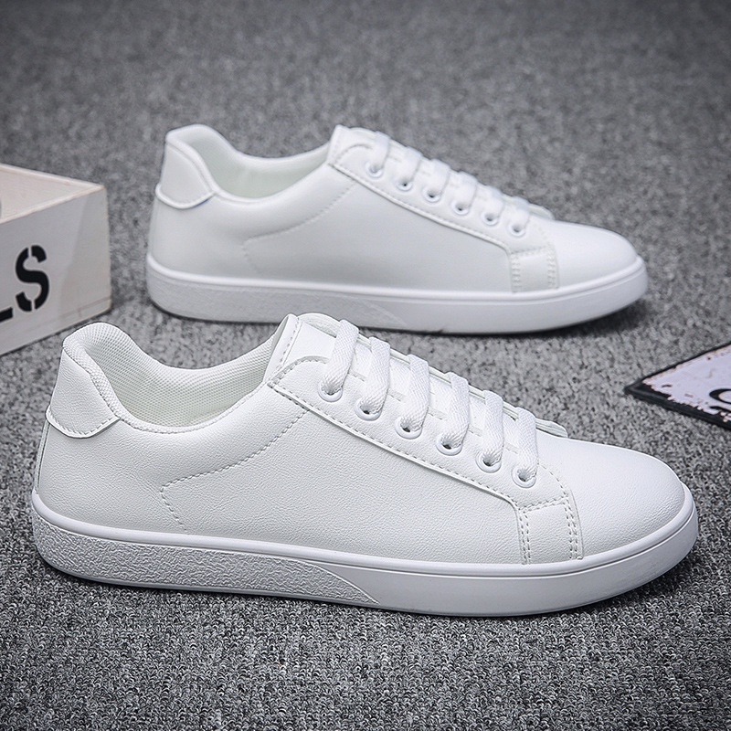 สไตล์ใหม่ รองเท้าสีขาว ชาย เวอร์ชั่นเกาหลี ลำลอง ลูกไม้ขึ้น สีทึบ รองเท้ากีฬา VAE096