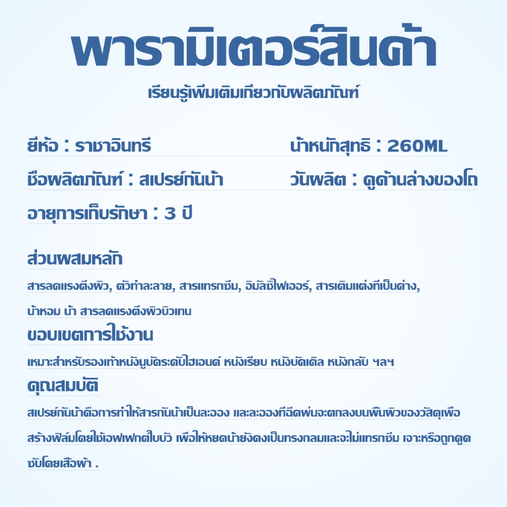 สเปรย์กันน้ำนาโน นาโนสเปรย์กันน้ำ 260ml ต่อต้านอนุมูลอิสระยาวนาน สเปรย์กันน้ำ ไม่เจ็บรองเท้า นาโนกันน้ำ
