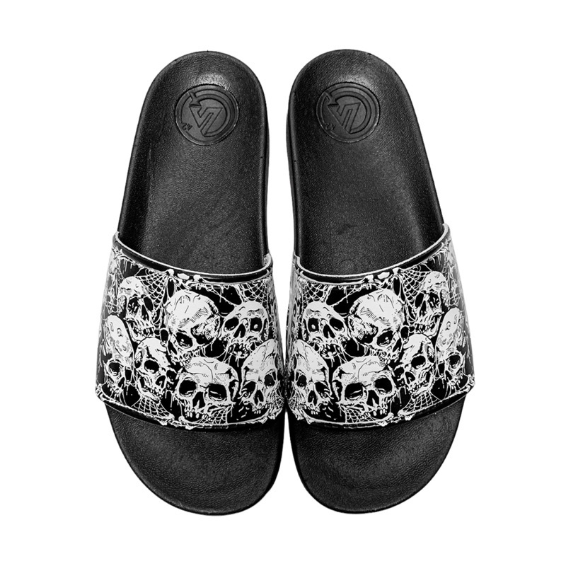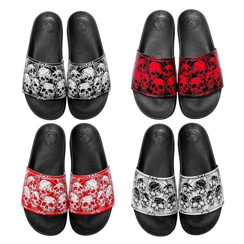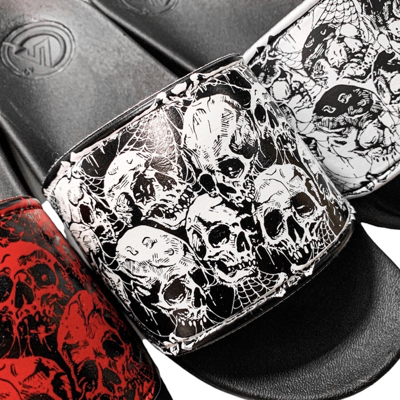 ใหม่! พร้อมส่ง 😈 รองเท้าแตะผู้ชาย ลายกะโหลก ไม่เหมือนใคร พื้นนิ่ม เพิ่ม 1-2ไซส์ งานแท้ 100% (ใย)