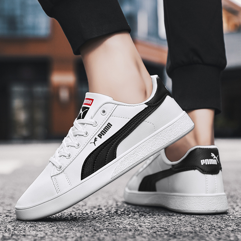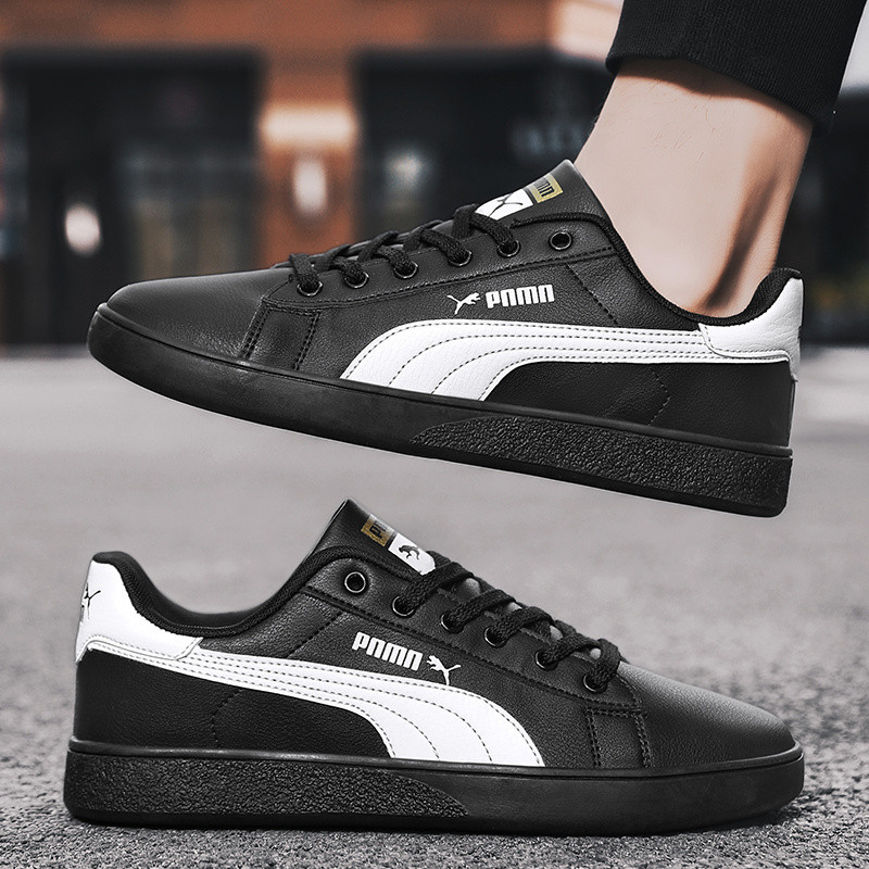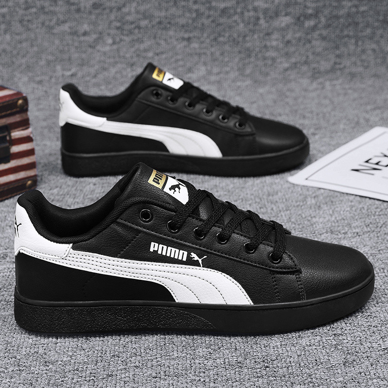 แฟชั่นหนังผู้ชายรองเท้าผ้าใบสีดํา ระบายอากาศได้ ปลอบโยน คลาสสิกรองเท้าลําลองบุรุษกลางแจ้งเดินรองเท้าคู่รองเท้าขนาด 36-47