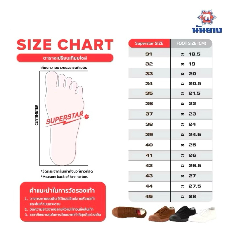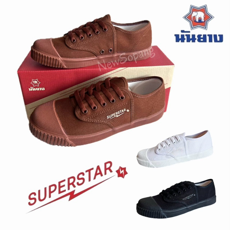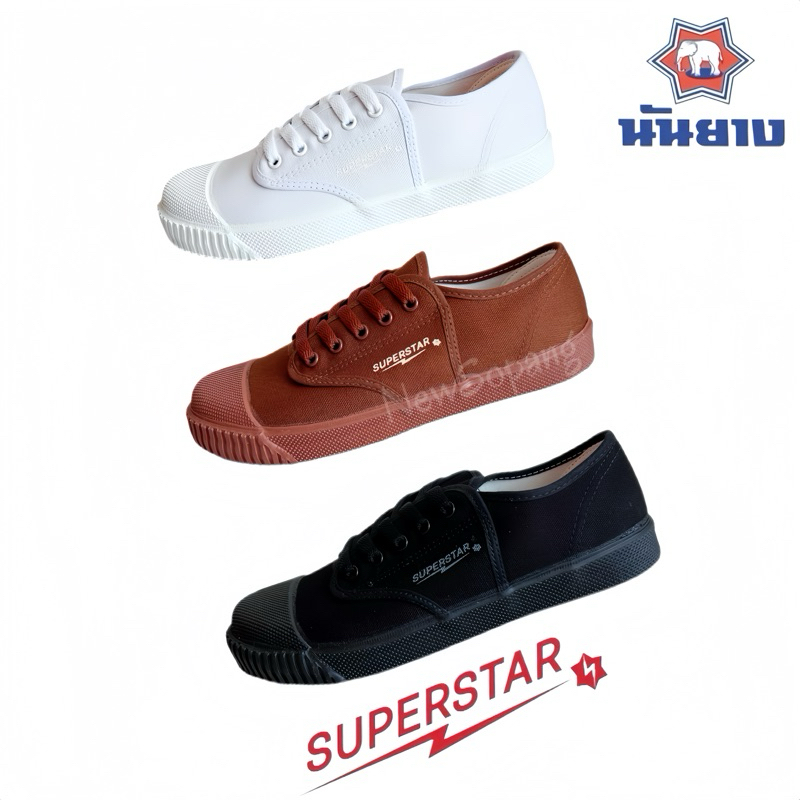 ใหม่ รองเท้าNanyang 🌟รุ่นSuperstar🌟นันยางรองเท้าผ้าใบนักเรียนมี3สี น้ำตาล ขาว ดำ เบอร์ 37-44 ของแท้100%