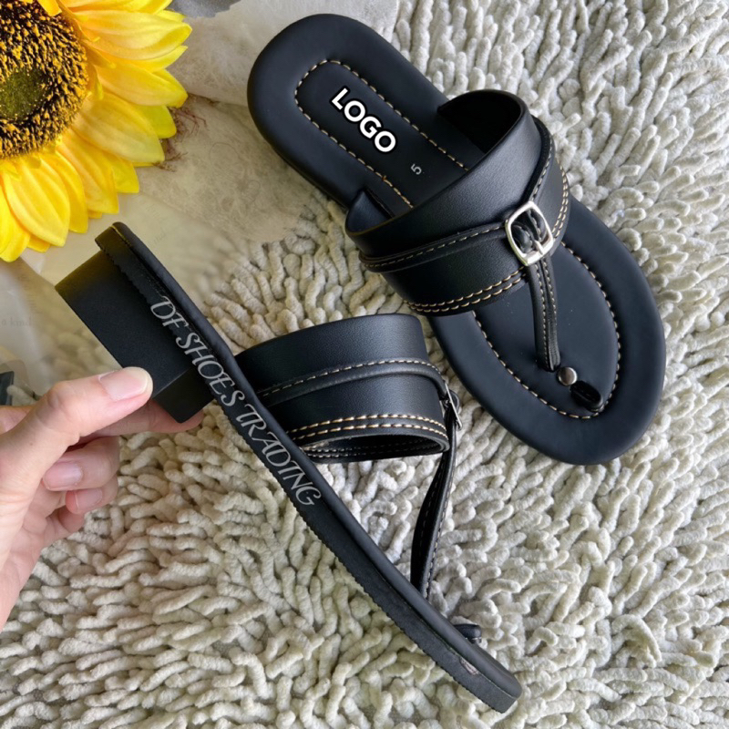 [59 บาท 12-14 พ.ย. + COONNOV79 +] LadyBug *** สินค้าขายดี *** รองเท้าแตะหูคีบ ตราเต่าทอง !!! พื้นดำล้วน หูหลากสี !!!