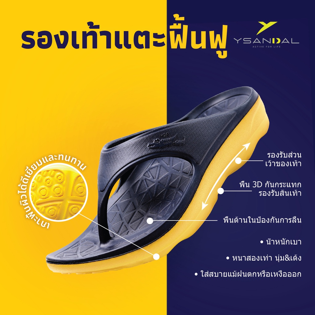 YSANDAL วายแซนดัล รองเท้าแตะฟื้นฟู Recovery Sandal – สี Dark Blue / Yellow