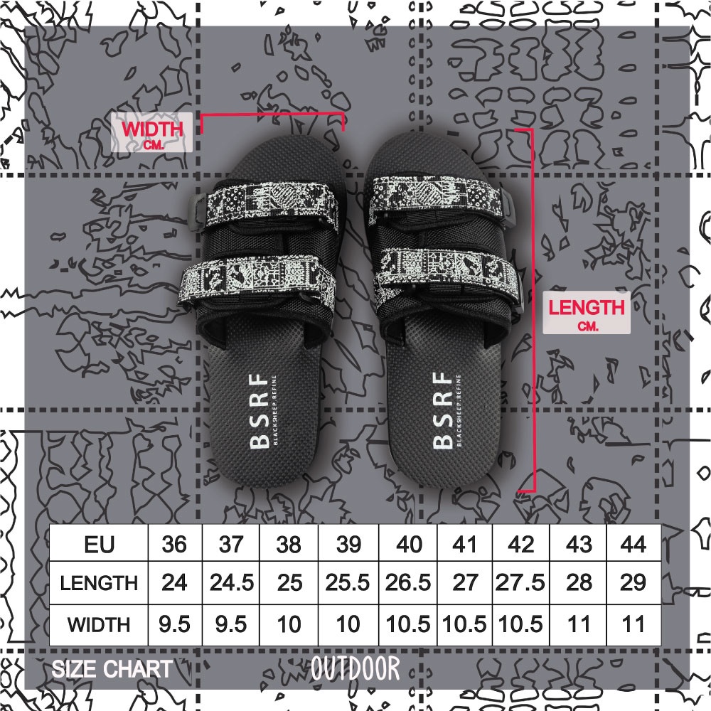 Blacksheepjeans BSRF รองเท้าแตะ Outdoor Sandal สายคาดพิมพ์ลายลิขสิทธิ์ พื้นยางพาราสีดำ รุ่น BSRF-U-SHOE2