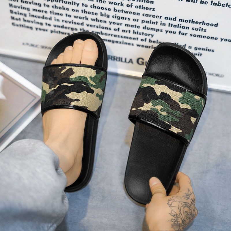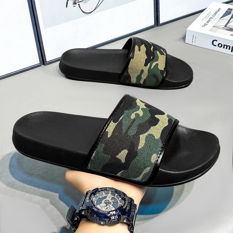 Camouflage ฤดูร้อนผู้ชายรองเท้าแตะกลางแจ้ง All-Match รองเท้าแตะชายหาดอินเทรนด์ผู้ชายห้องน้ํา Anti-Slip Stepping on Shit Feel Fli