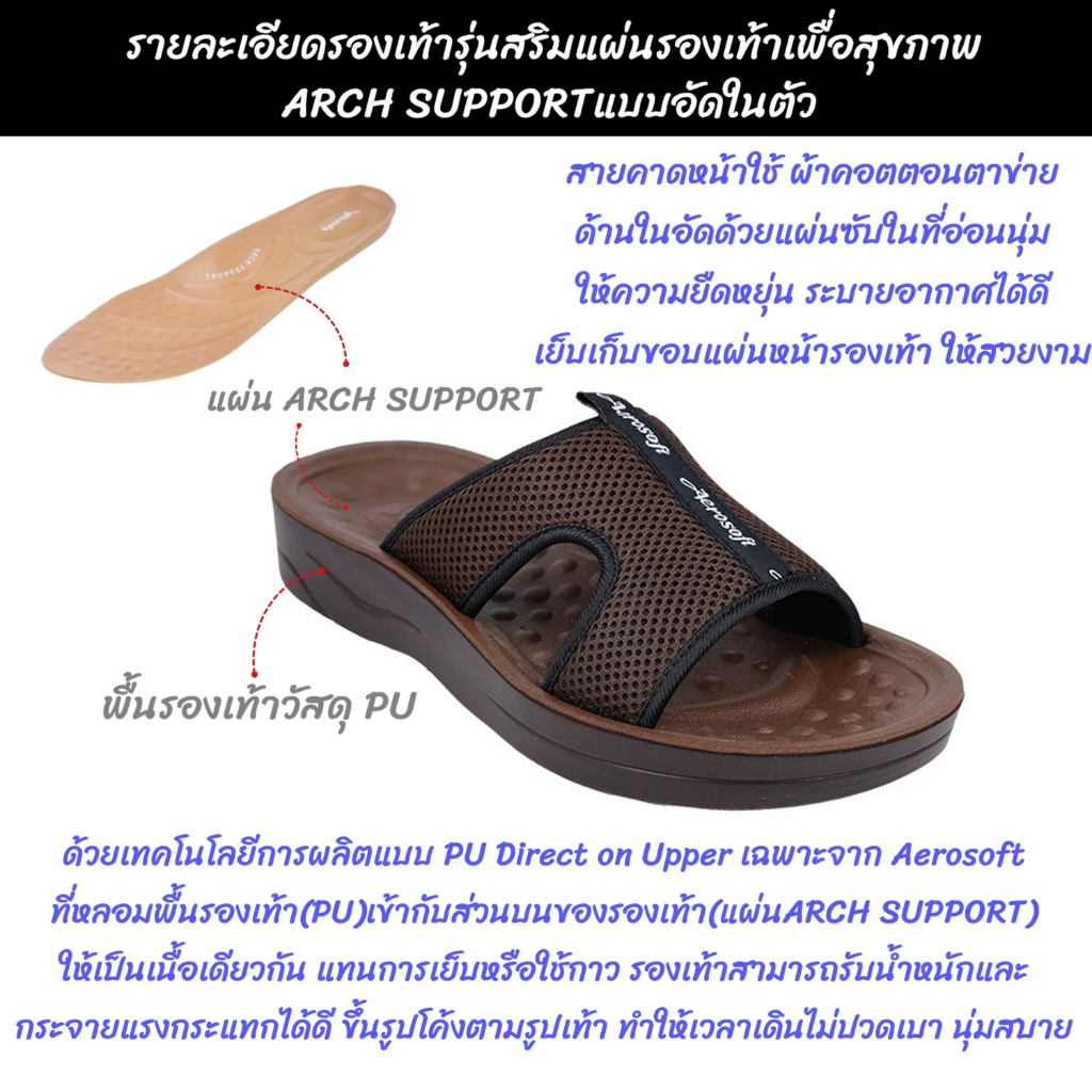 Aerosoft รองเท้าแตะผู้ชาย รองเท้าแตะแบบสวม เพื่อสุขภาพ แอโร่ซอฟ SM3031