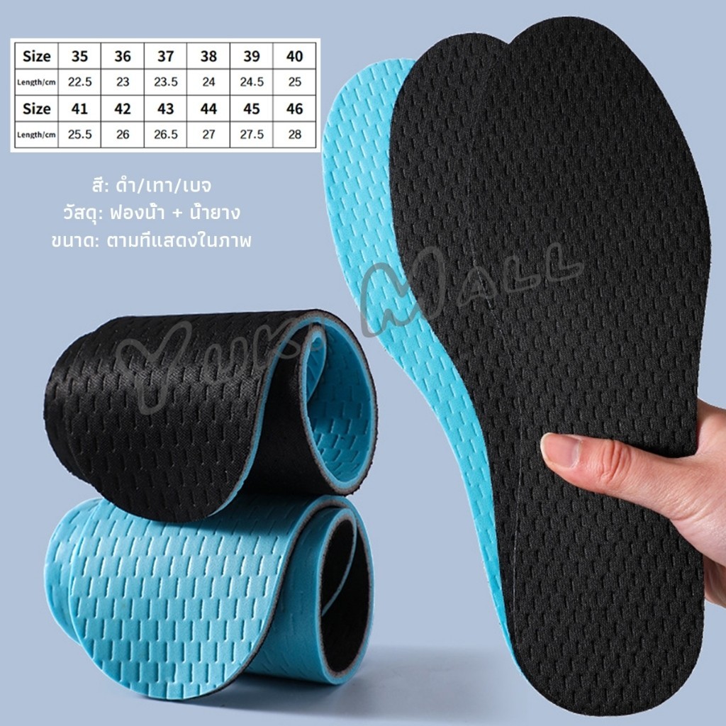 RH. พื้นรองเท้ายางพารา ดูดซับเหงื่อได้ดี ระบายอากาศได้ดี ระงับกลิ่นกาย shoes insole