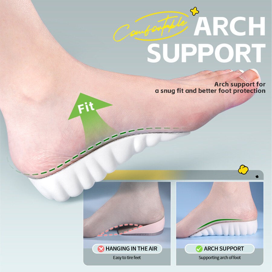 พื้นรองเท้ากายอุปกรณ์ดูดซับแรงกระแทกพร้อมการสนับสนุนส่วนโค้ง:แผ่นรองรองเท้ากีฬาแบบนุ่มสําหรับการบรรเทาอาการปวดเท้าที่มี