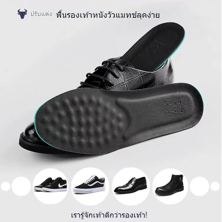 พื้นรองเท้าหนังวัวหนังแท้ ผู้ชายดูดซับเหงื่อ กันกลิ่น ระบายอากาศและดูดซับแรงกระแทก Leather insole