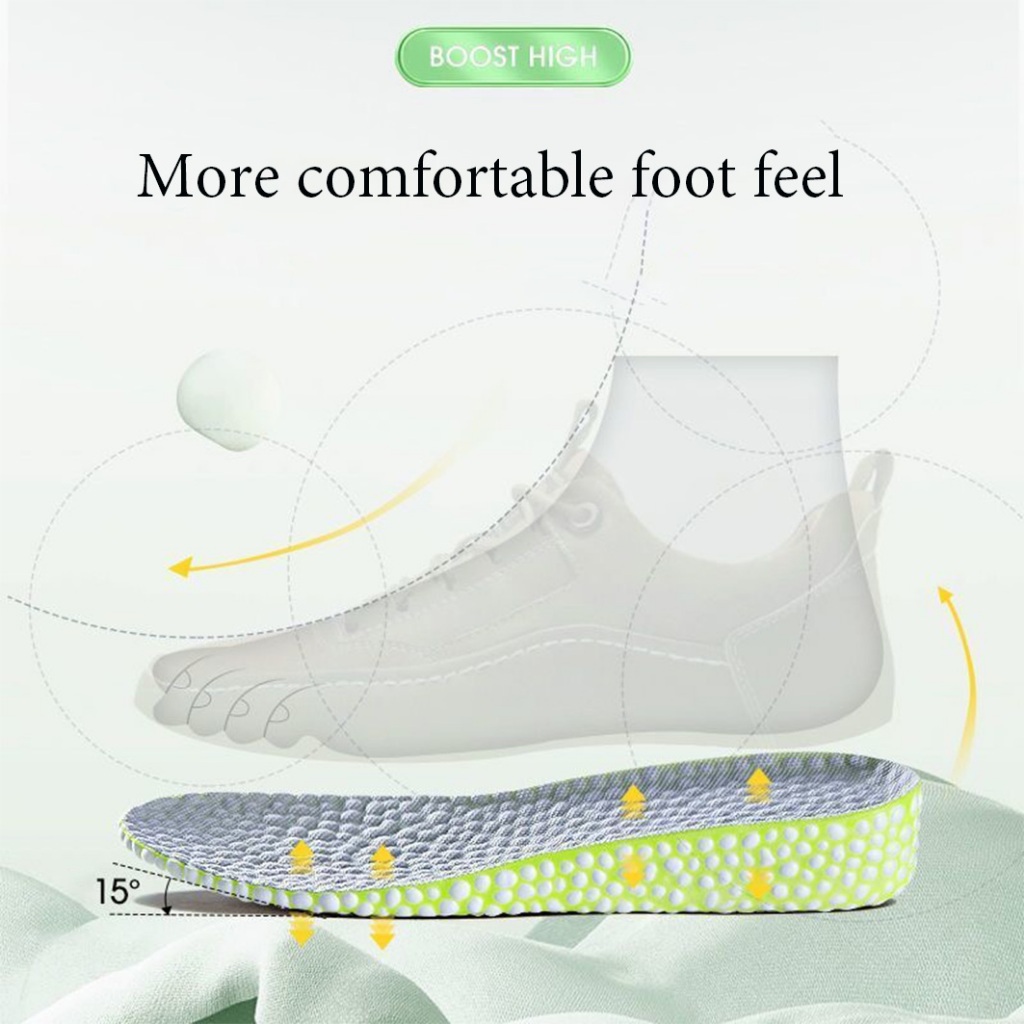 เพิ่มความสูง insoles ชายเพิ่มป๊อปคอร์นจริงกีฬาการดูดซับแรงกระแทกภายในเพิ่มความสูงกลิ่นที่มองไม่เห็นไม่เหนื่อยเท้าผู้หญิง