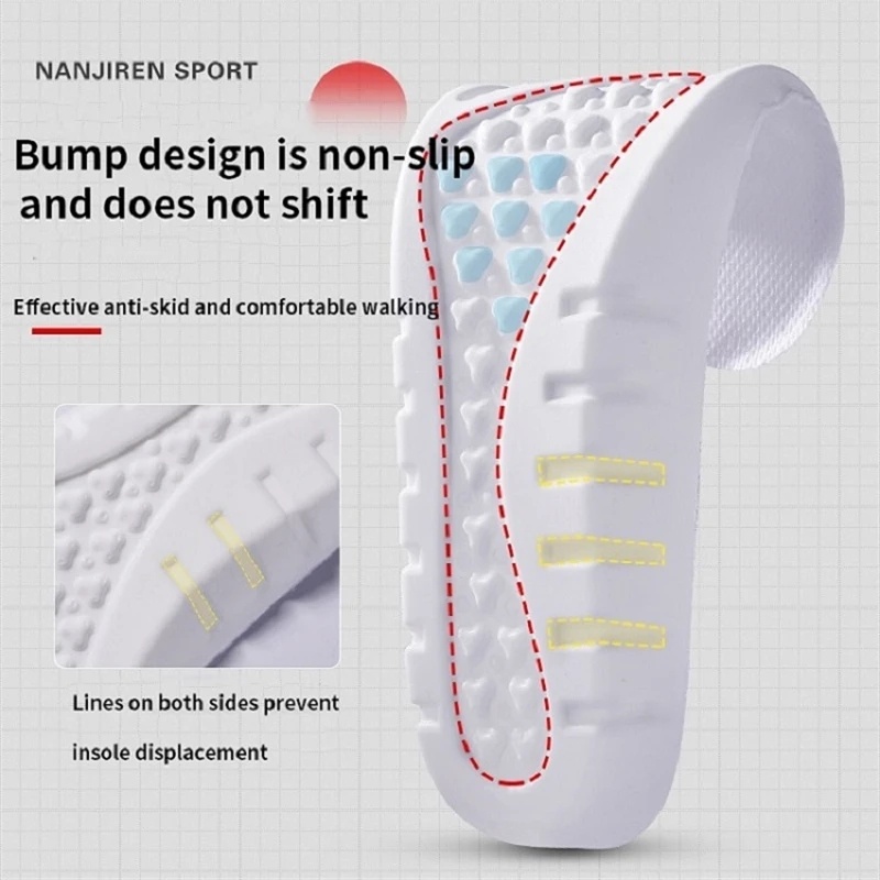 แผ่นพื้นรองเท้าซิลิโคน โฟมนิ่ม ยืดหยุ่น ดูดซับแรงกระแทก ระบายอากาศได้ดี เหมาะกับการวิ่ง เล่นกีฬา สําหรับผู้ชาย และผู้หญิง