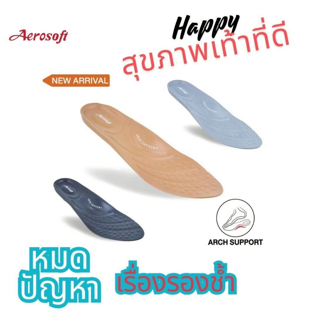 แผ่นรองเท้าเพื่อสุขภาพAerosoft(แอโร่ซอฟ)แผ่นInsole แก้ปัญหาแก้รองช้ำหรือเดินนานๆลดแรงกระแทก ใส่สบายPUW0601
