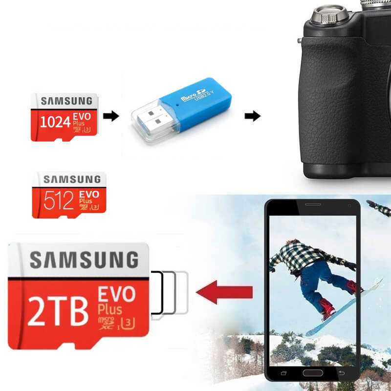 ( Samsung ของแท้ ) EVO Micro SD Card Class10 512GB/1TB/2TB การ์ดหน่วยความจํา ✈ การ์ดหน่วยความจํา ไมโคร sd ความเร็วสูง/โทรศัพท์มือถือ/แท็บเล็ต/การ์ดหน่วยความจํากล้อง