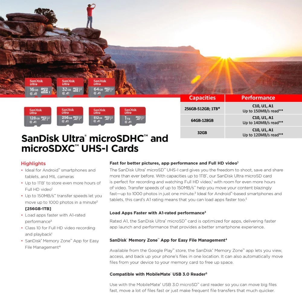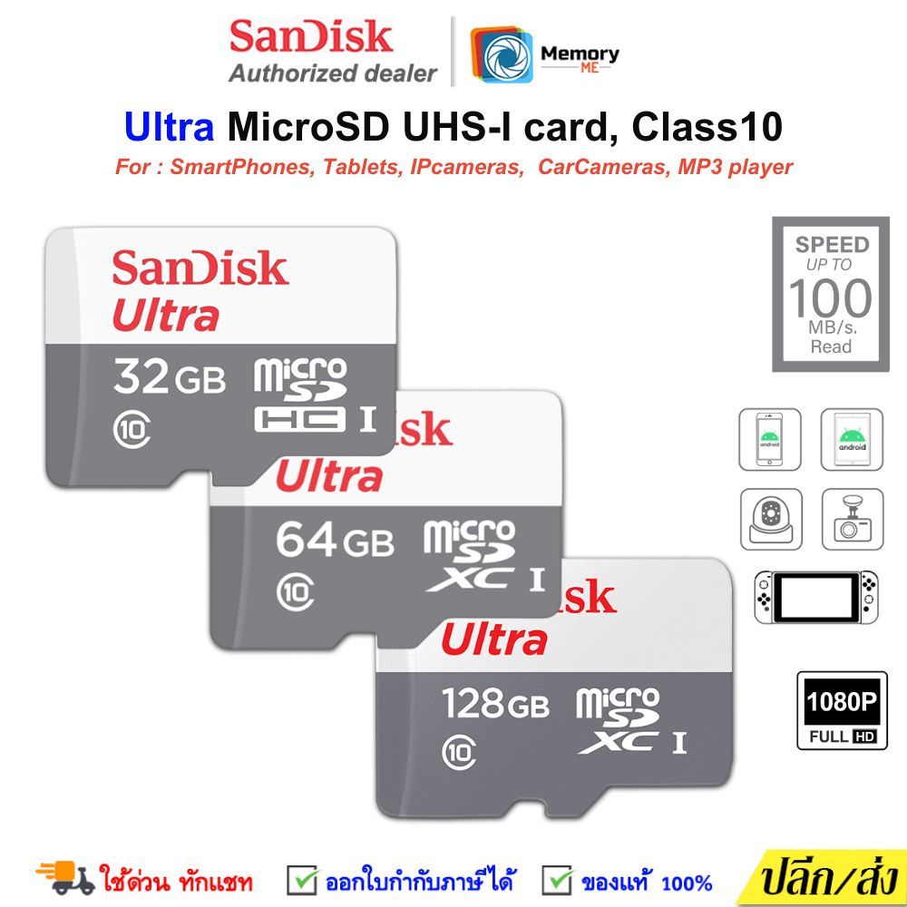 (ส่งด่วน) SANDISK Ultra Micro SDcard 128GB (100MB) UHS-I C10 memory card เมม กล้องหน้ารถ โทรศัพท์ แท็บเล็ต แท้