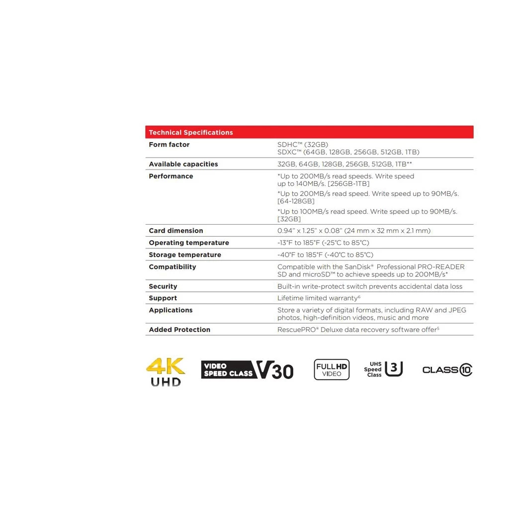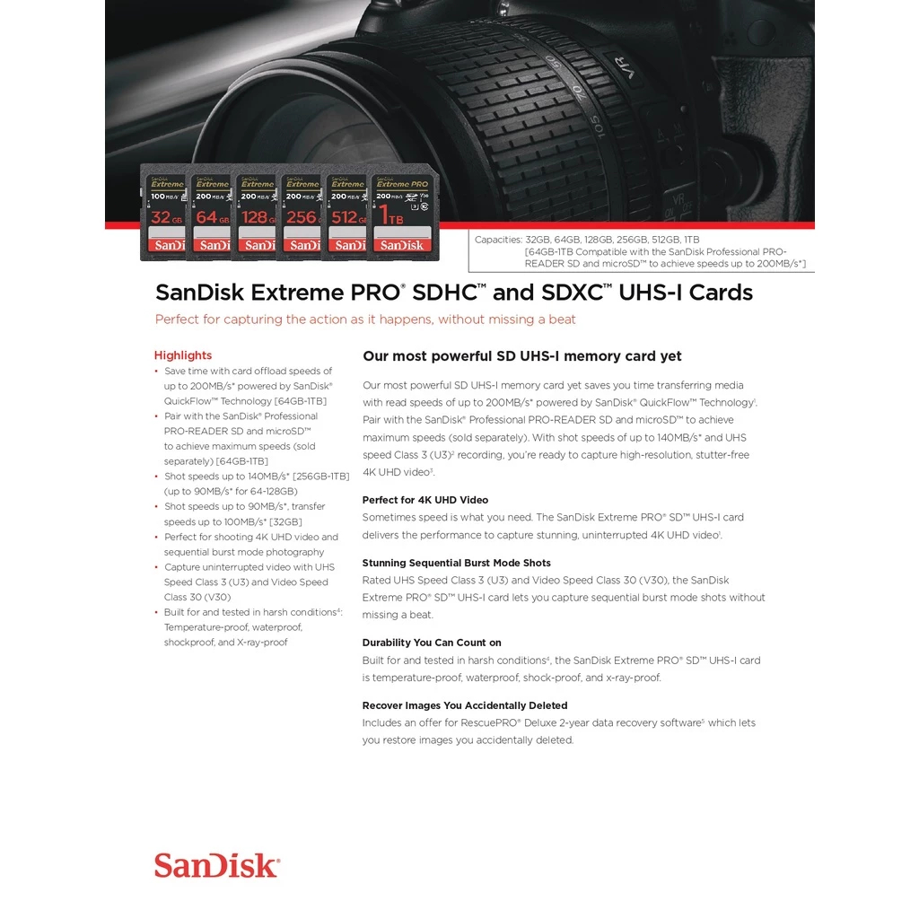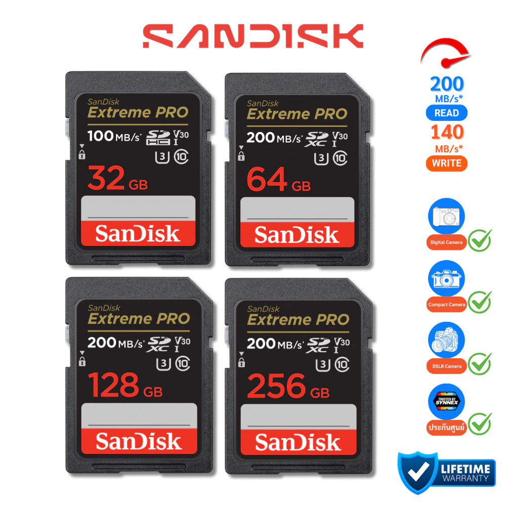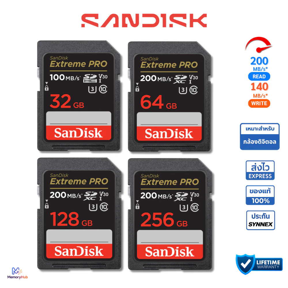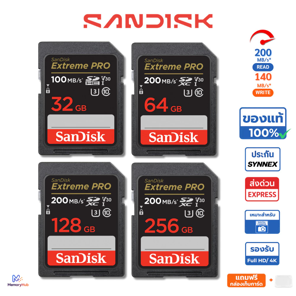 ✔ของแท้✔⚡️เมมโมรี่การ์ด⚡️ SanDisk Extreme Pro SD Card SDXC Speed R 200MBs 32GB 64GB 128GB เมมโมรี่การ์ด กล้อง DSLR