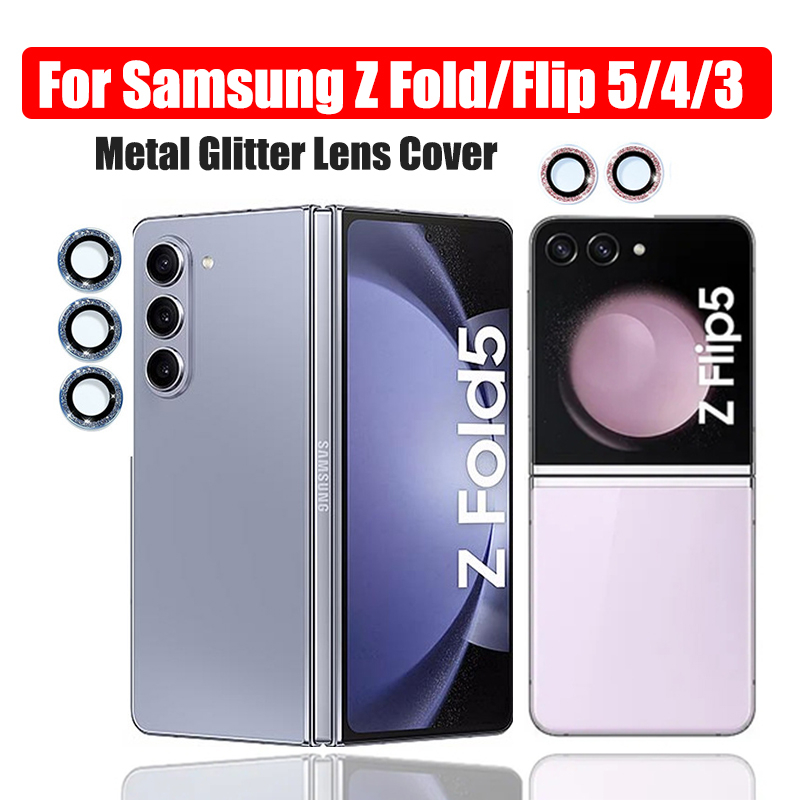 ฝาครอบเลนส์กลิตเตอร์สําหรับ Samsung Z พับ 7 6 5/Flip 5 6/พับ 7 ตัวป้องกันเลนส์กล้องสําหรับ Z Flip 6/7 ฟิล์มแก้วแหวนเลนส์โลหะ