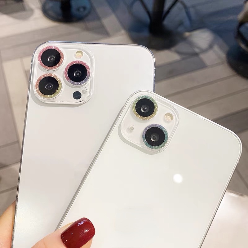 ฟิล์มกันรอยด้านหลัง กันตก ประดับกลิตเตอร์ สีชมพู สําหรับกล้อง 14 13 12 11 Pro Max 14 Plus