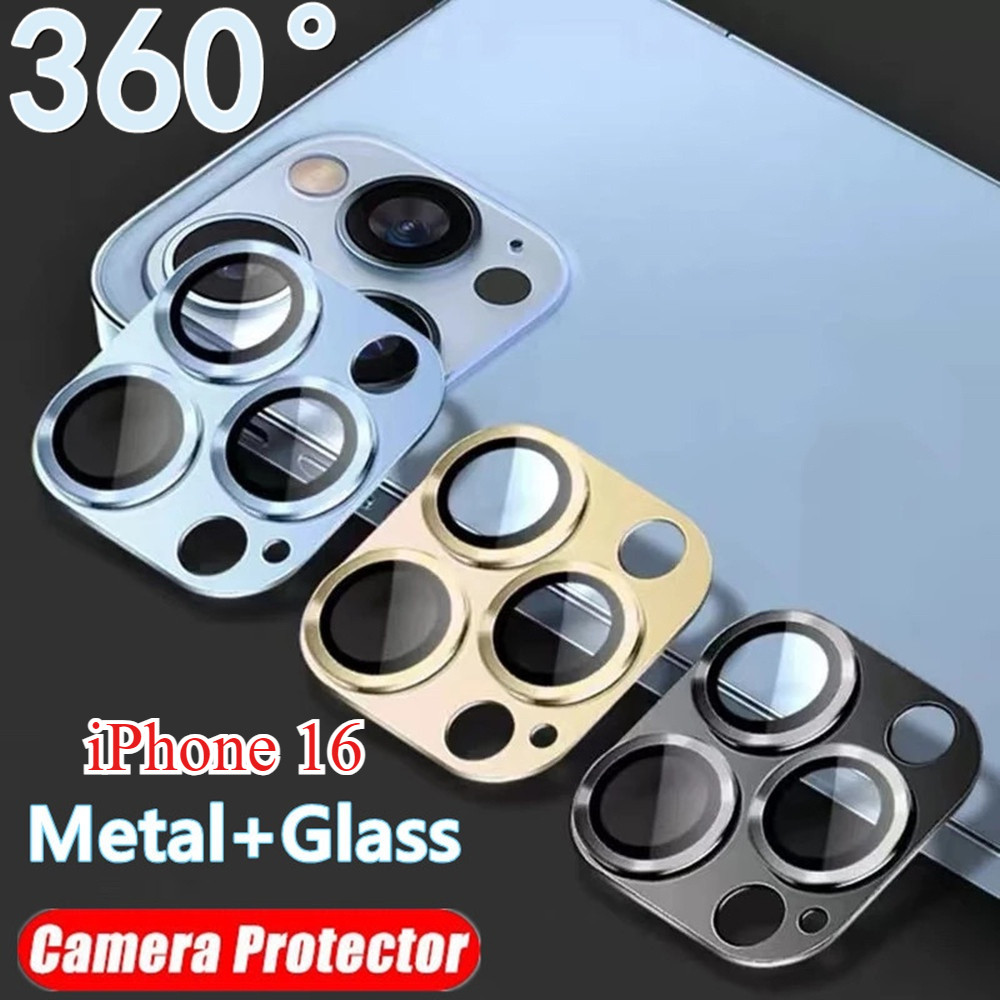 คลุมทั้งหมดโลหะกล้องเลนส์ป้องกันบนสําหรับiphone 16 Pro MaxกระจกนิรภัยสําหรับiPhone 11 12 13 14 15 16 Pro Max Plus 12 13 Miniกลับเลนส์กล้องProtectorกระจก