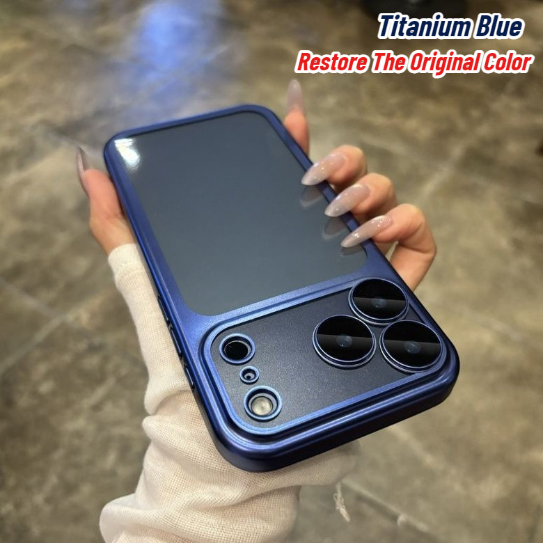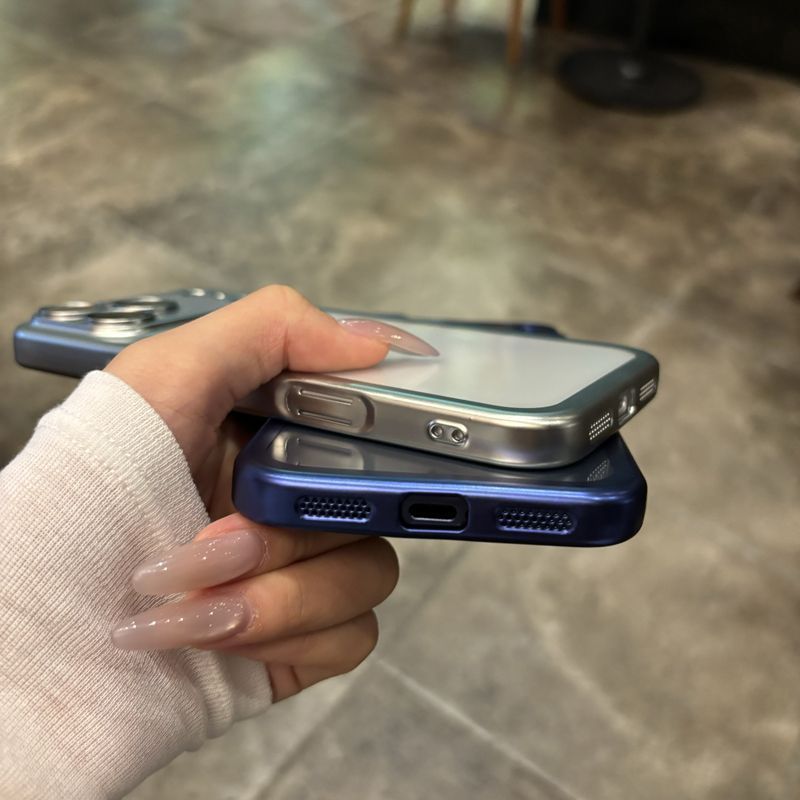 พร้อมฟิล์มกันรอยเลนส์ Ultra Thin ชุบ Blue Matte เคสโทรศัพท์โปร่งแสงสําหรับ iPhone 17 16 15 14 13 12 Pro Max 14/15/16 Plus 17Air กันกระแทก PC Hard ฝาหลัง