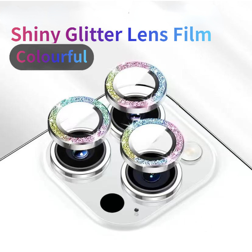 หรูหราGlitterด้านหลังกล้องเลนส์ฟิล์มป้องกันเหมาะสําหรับIPhone 17 Pro Max 16 15 14 13 12 11 Pro Max 17Air 16 Plusกล้องเลนส์แก้วฟิล์มกันกระแทกป้องกันiPhone