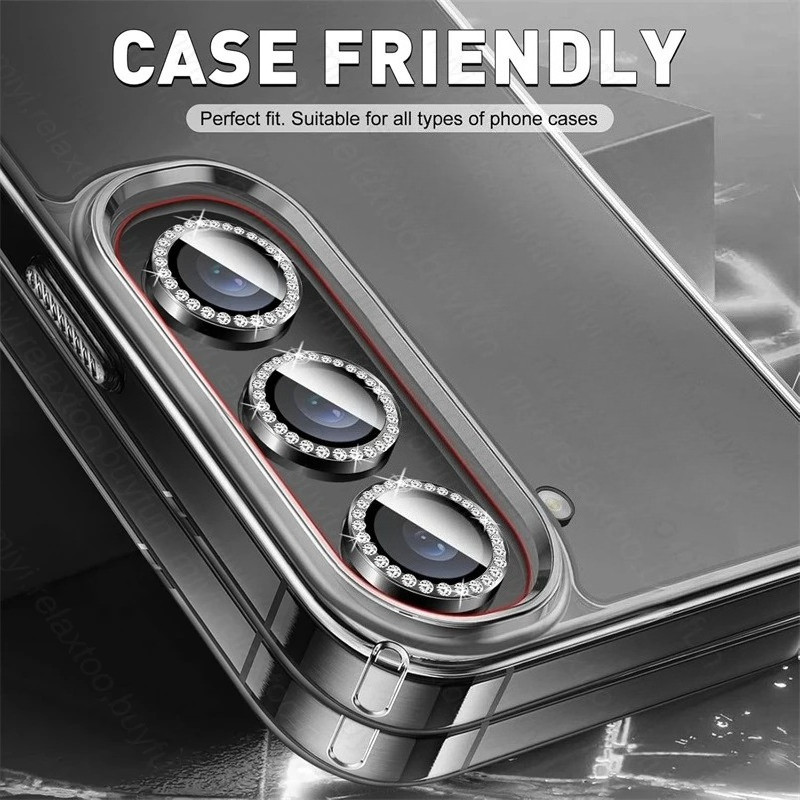 สําหรับ Samsung Z Flip 7 7FE Glitter เพชรโลหะเลนส์กล้องฟิล์มกระจกนิรภัยสําหรับ Samsung Z พับ 7 กันน้ําโทรศัพท์ฝาหลังเลนส์กันชน Protector