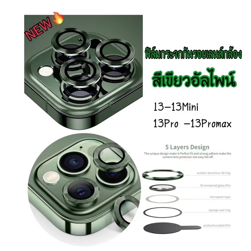 📸(ใหม่ !! สีเขียว) วงแหวน กระจกกันรอย เลนส์กล้อง ใช้สำหรับไอโฟน 13 / 13 Pro / 13 Pro Max / 13 mini ราคาต่อชุด พร้อมส่ง
