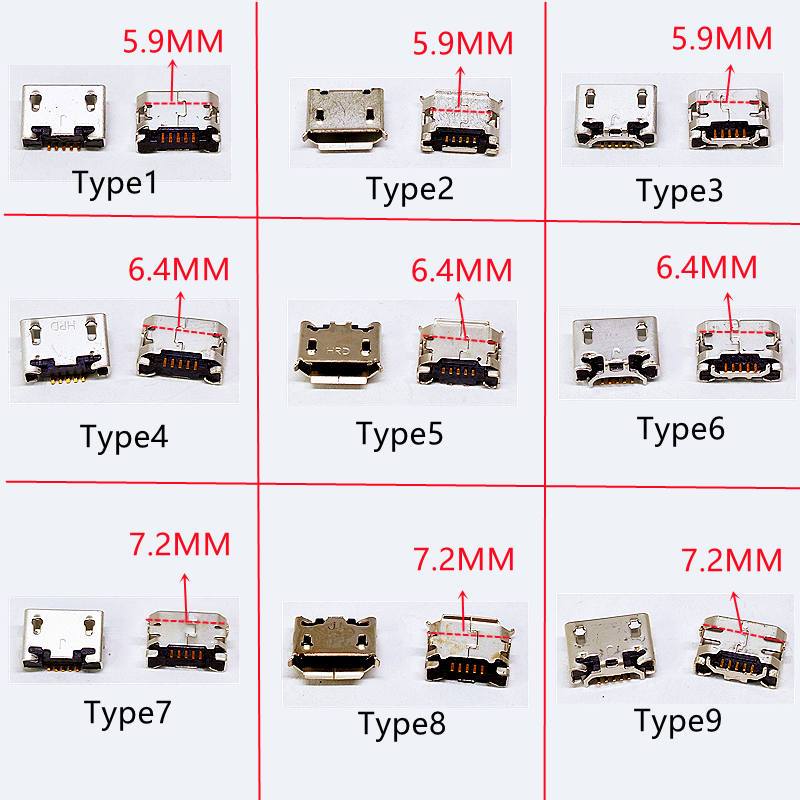 5-50pcs Micro USB mini Connector 5pin 5.9 มม. 6.4 มม. 7.2 มม.เข็มสั้น 5P DIP2 พอร์ตข้อมูลพอร์ตชาร์จสําหรับ Mobile end ปลั๊ก V8 พอร์ต