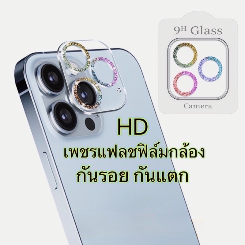🔥🔥 เพชรแฟลชฟิล์มกล้องไอโฟนรุ่นใหม่ ฟิล์มกระจก กันรอรอย เลนส์กล้อง สำหรับ iphone 16E 16 Pro Max 15 14 Pro Max 13 mini