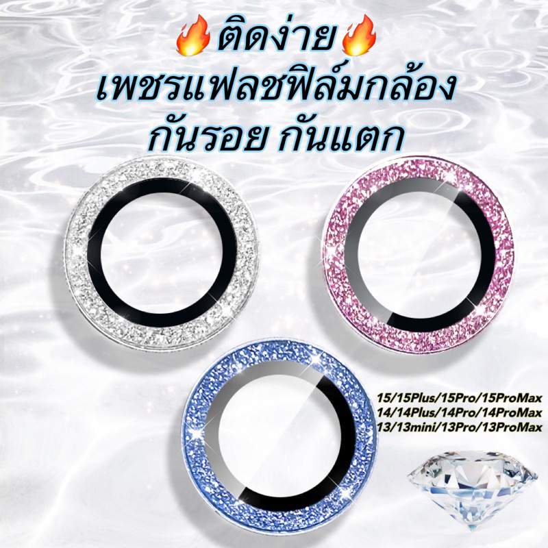 🔥ฟิล์มกล้อง for ไอโฟน iPhone 16 15 11 12 13 14 Pro Max 14 Plus 12 13 Mini ฟิล์ม กระจก เพชรแฟลชรุ่นใหม่ คลุมกล้องทั้งหมด