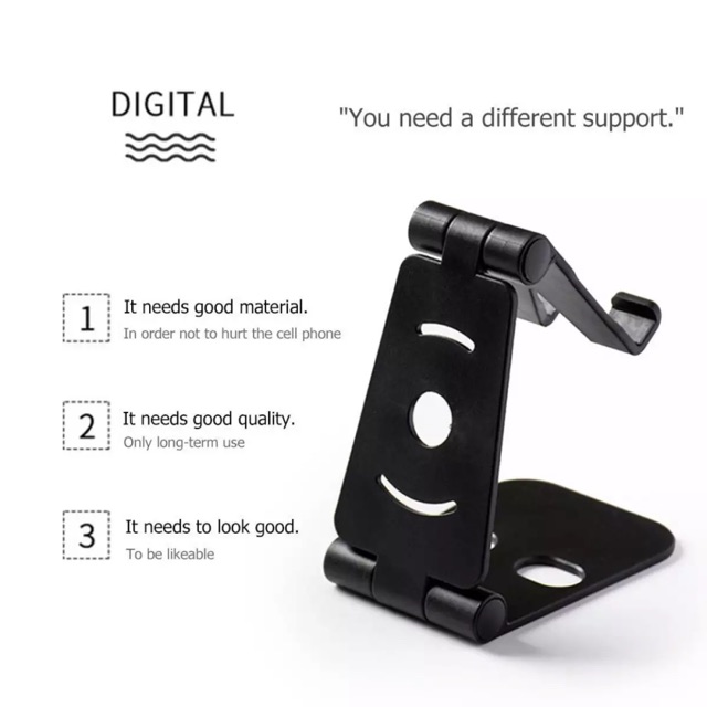 ที่วางโทรศัพท์มือถือ ที่ยึดมือถือ ตั้งได้ทั้งแนวตั้งและแนวนอน แบบติดเคส สามารถพับเก็บได้ มี 2 สีให้เลือก (สีดำ/สีเงิน)