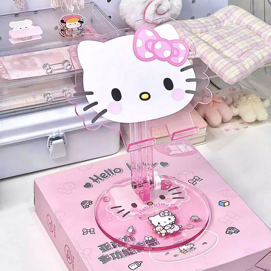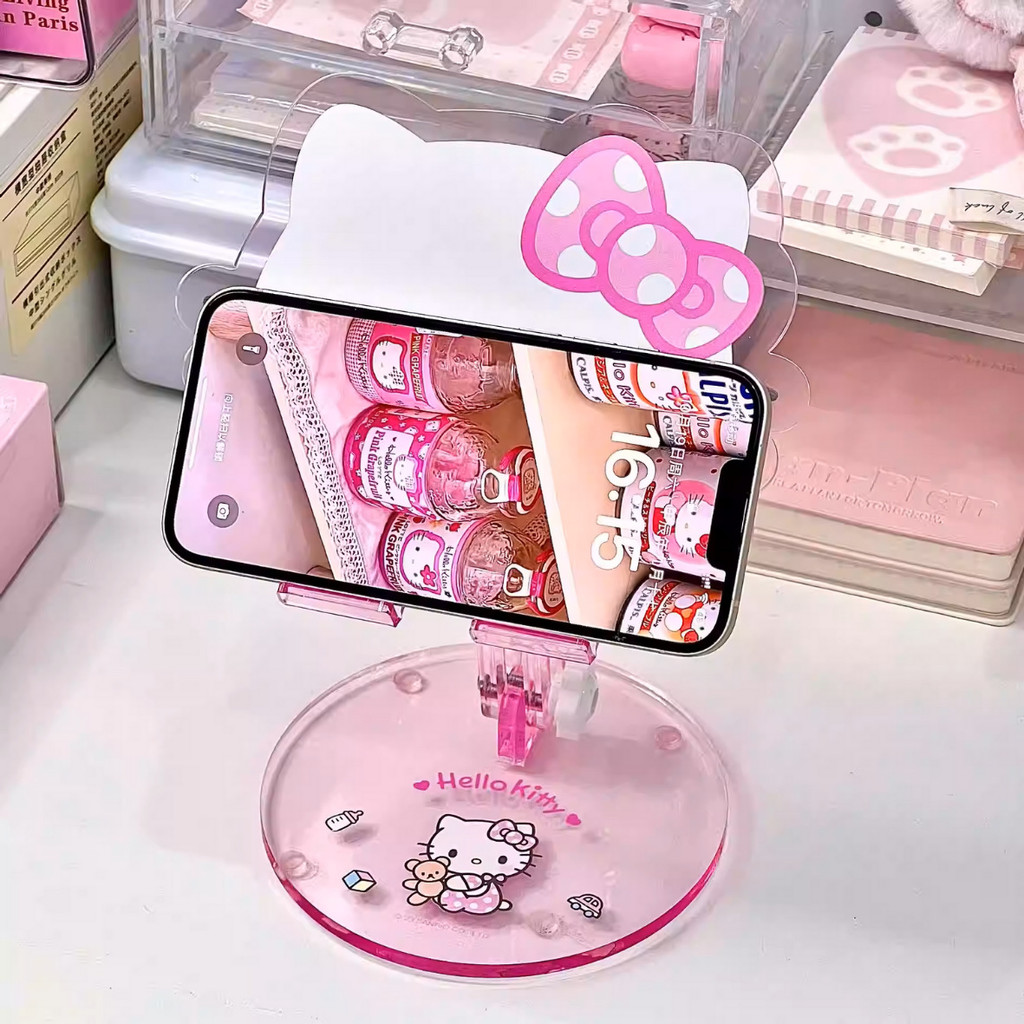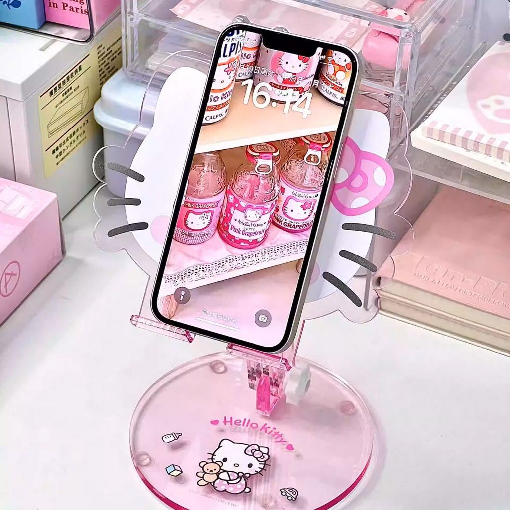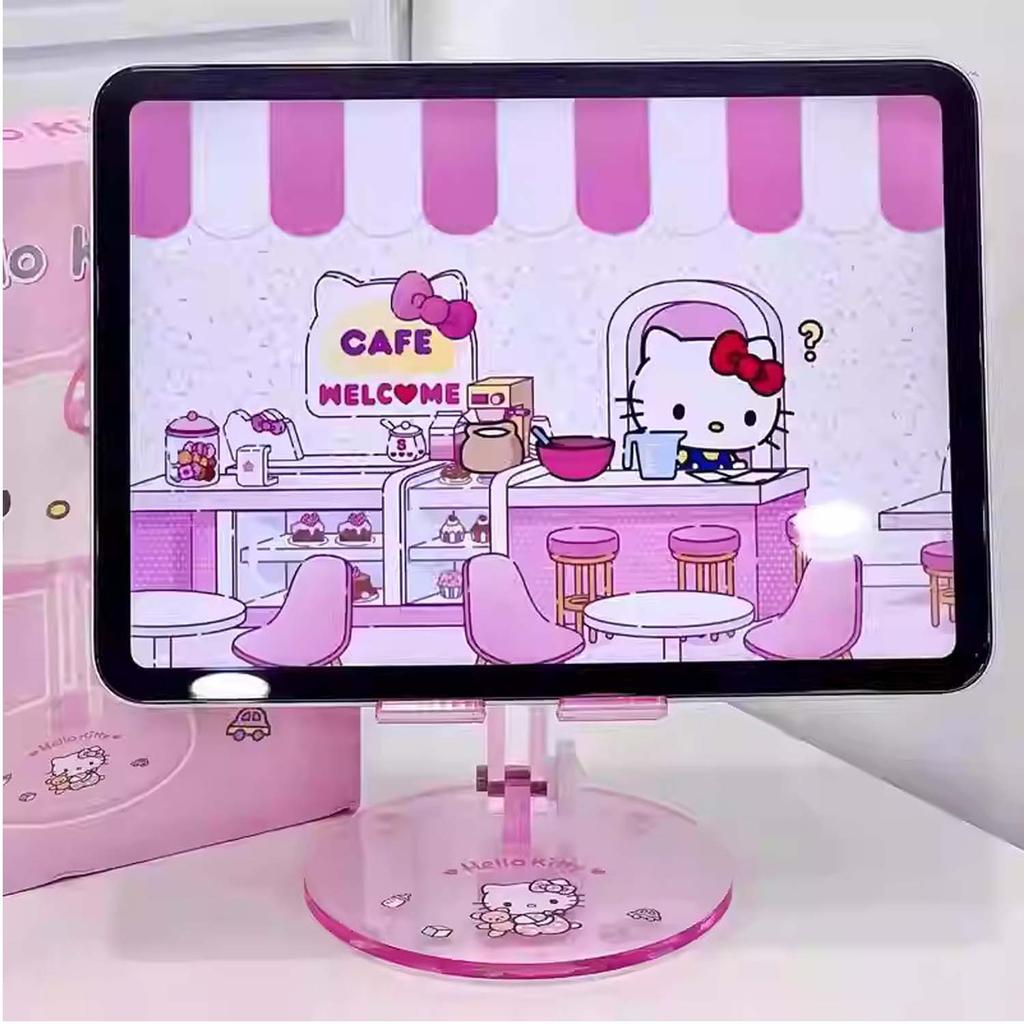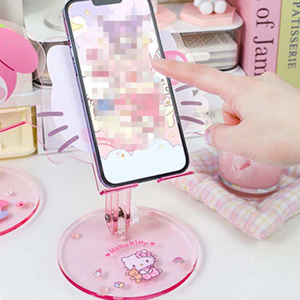 ที่วางโทรศัพท์อะคริลิค สวัสดี คิตตี้ ฐานถ่วงน้ําหนักที่มีเสถียรภาพพร้อมการยกเรียบ & 180° หมุนตัวยึดสากลสําหรับโทรศัพท์แท็บเล็ตพร้อมเคส