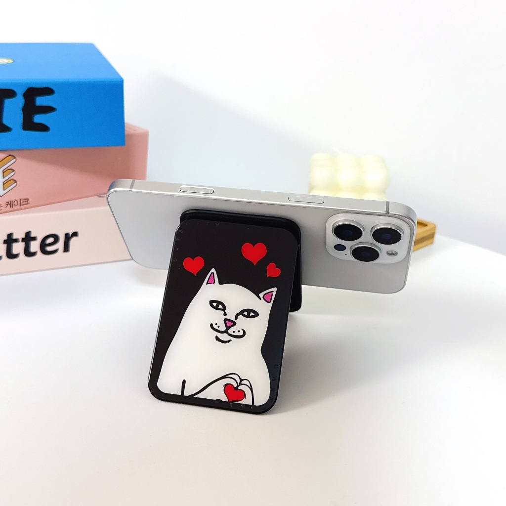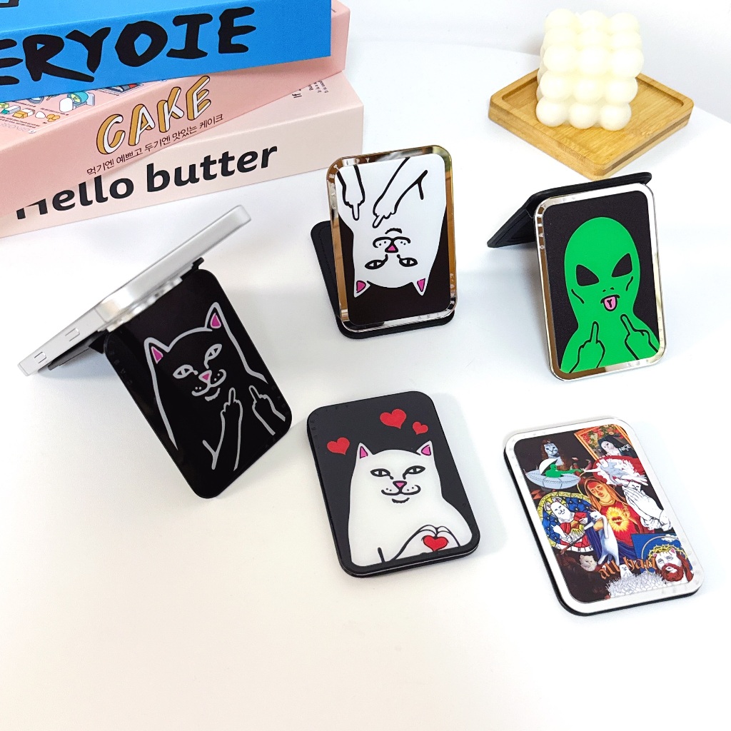 นิ้วกลางแมวที่วางโทรศัพท์แม่เหล็กที่แข็งแกร่งกระจกผู้ถือบัตรที่วางโทรศัพท์ที่วางขี้เกียจ แม็กเซฟ สากล