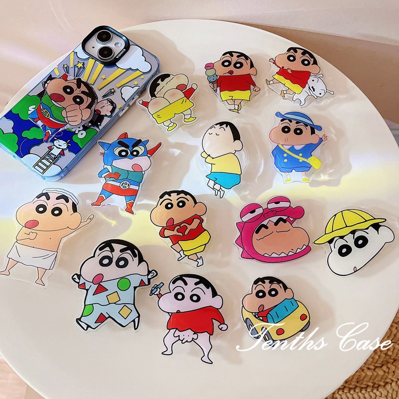 สนุก ชินจัง เด็กผู้ชาย รูปแบบ รูปร่าง ตัวยึด ปรับขนาดได้ เดสก์ท็อป ขี้เกียจ ปุ่ม ความปลอดภัย ถุงลมนิรภัย เคสโทรศัพท์ สร้างสรรค์