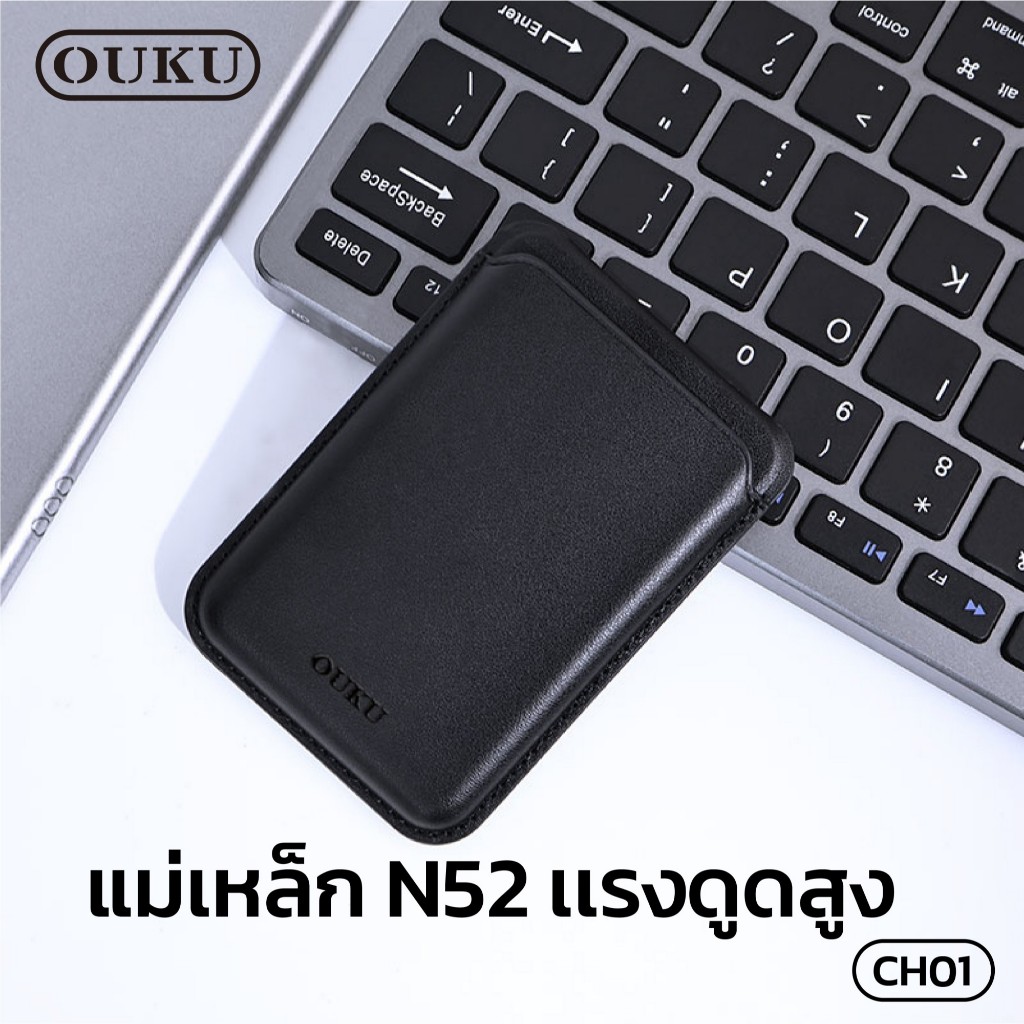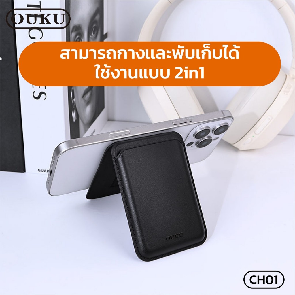 ที่ใส่นามบัตรกระเป๋าการ์ด MagSafe OUKU CH01 เป็นขาตั้งโทรศัพท์ได้ ดูดติดแน่น พับได้ ทำจากหนังคุณภาพดี