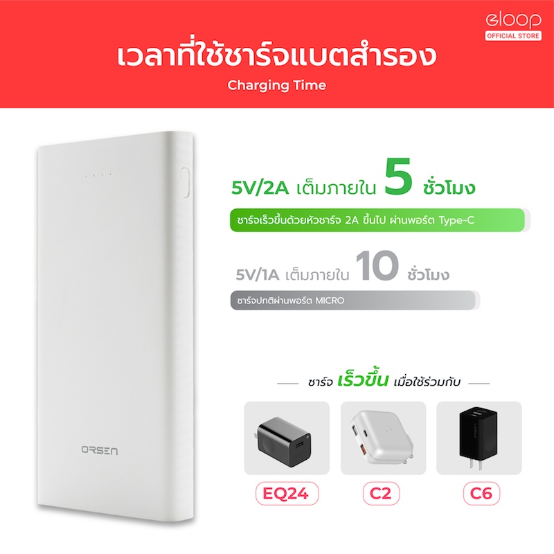 [359บาท โค้ดคุ้ม] Orsen Eloop EW54 EW55 E53 E59 แบตสำรอง PowerBank ของแท้ พาวเวอร์แบงค์ ชาร์จเร็ว