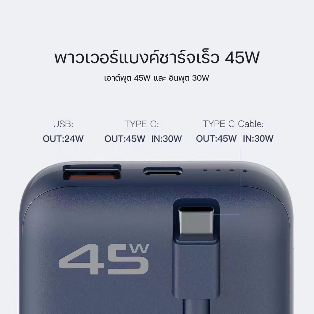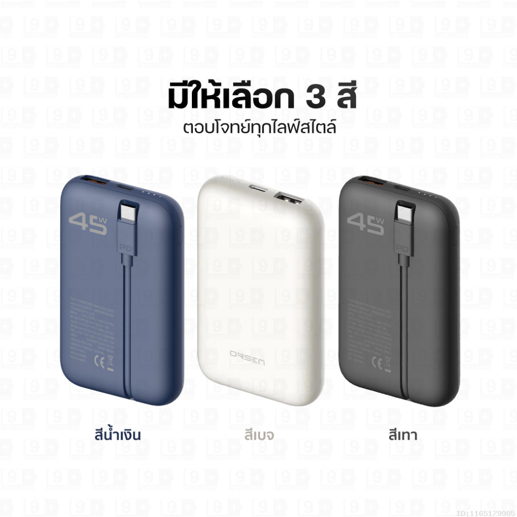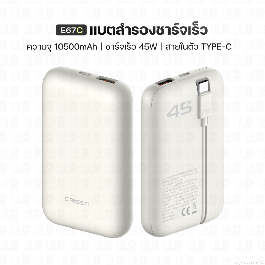 [879บ.สุดคุ้ม] Orsen by Eloop E67C แบตสำรอง 10500mAh PowerBank ชาร์จเร็ว PD 45W สายในตัว Type-C Fast Charge