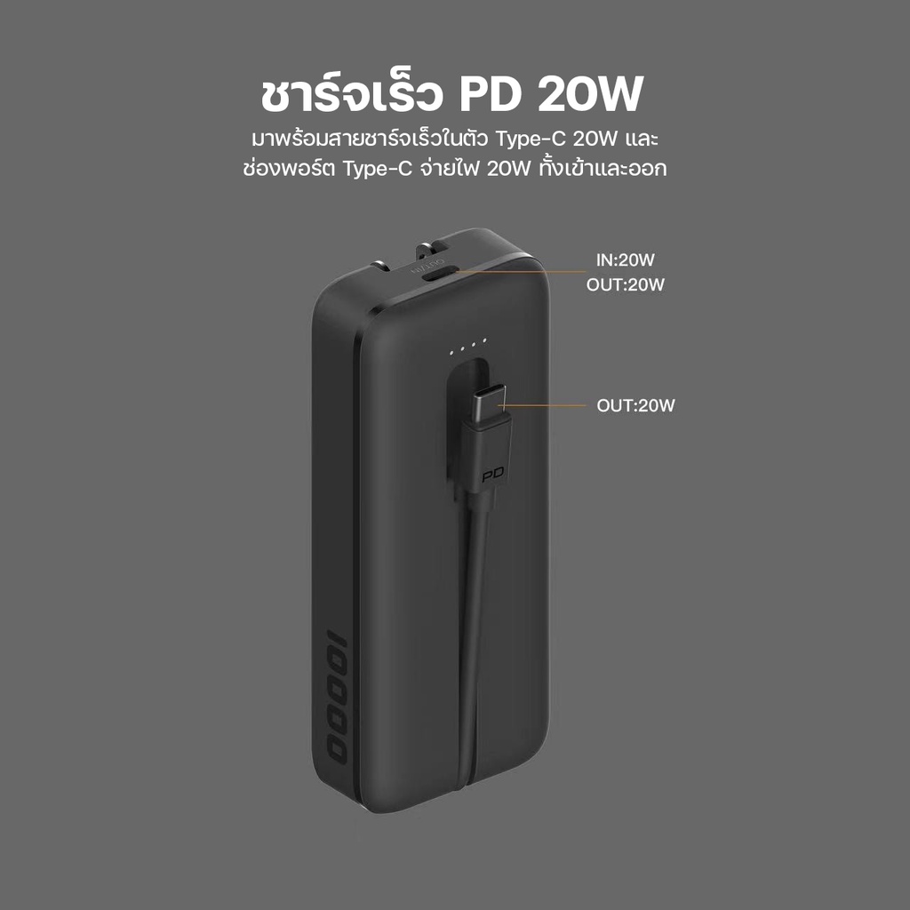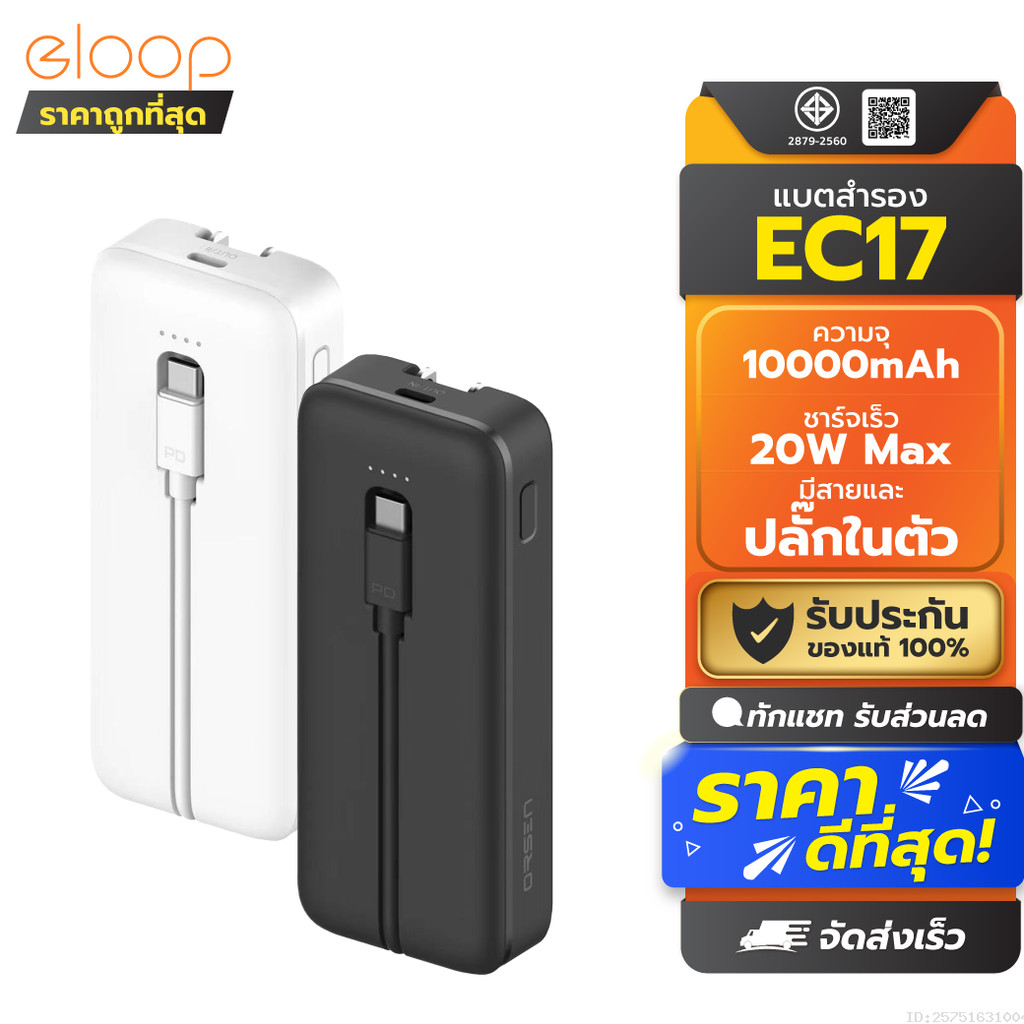 [499บ.ช้อปคุ้ม] Orsen by Eloop EC17 แบตสำรอง มีสายในตัว 10000mAh ชาร์จเร็ว PD 20W Type C มีขาปลั๊ก หัวชาร์จ