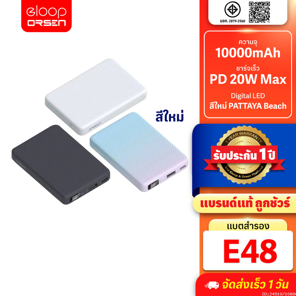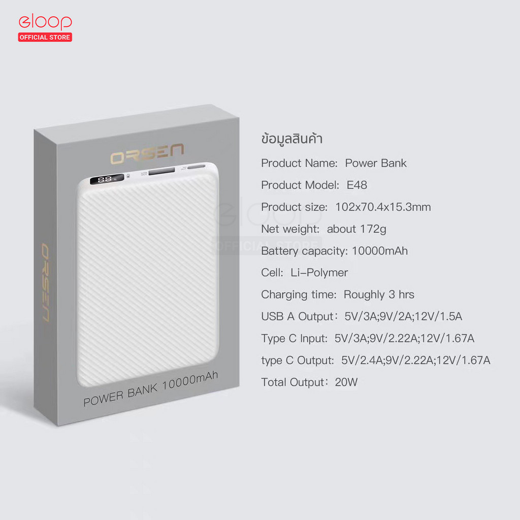 [489บ.สุดคุ้ม] Orsen by Eloop E48 แบตสำรอง 10000mAh QC 3.0 PD 20W จอ LED Powerbank Type C Fast Charge