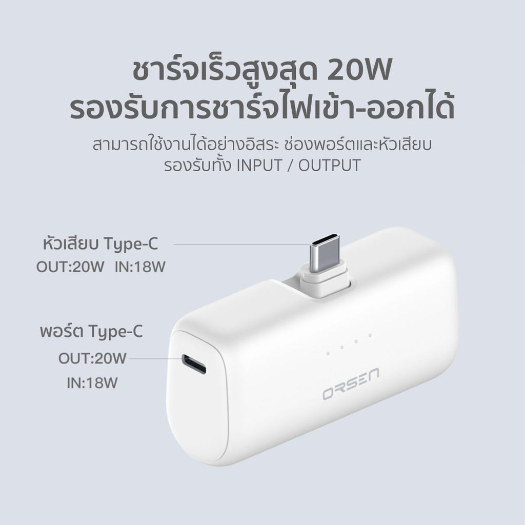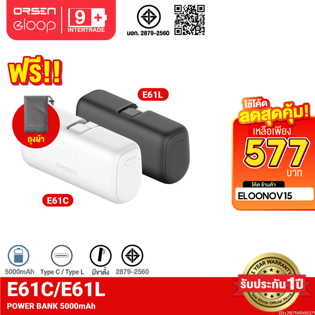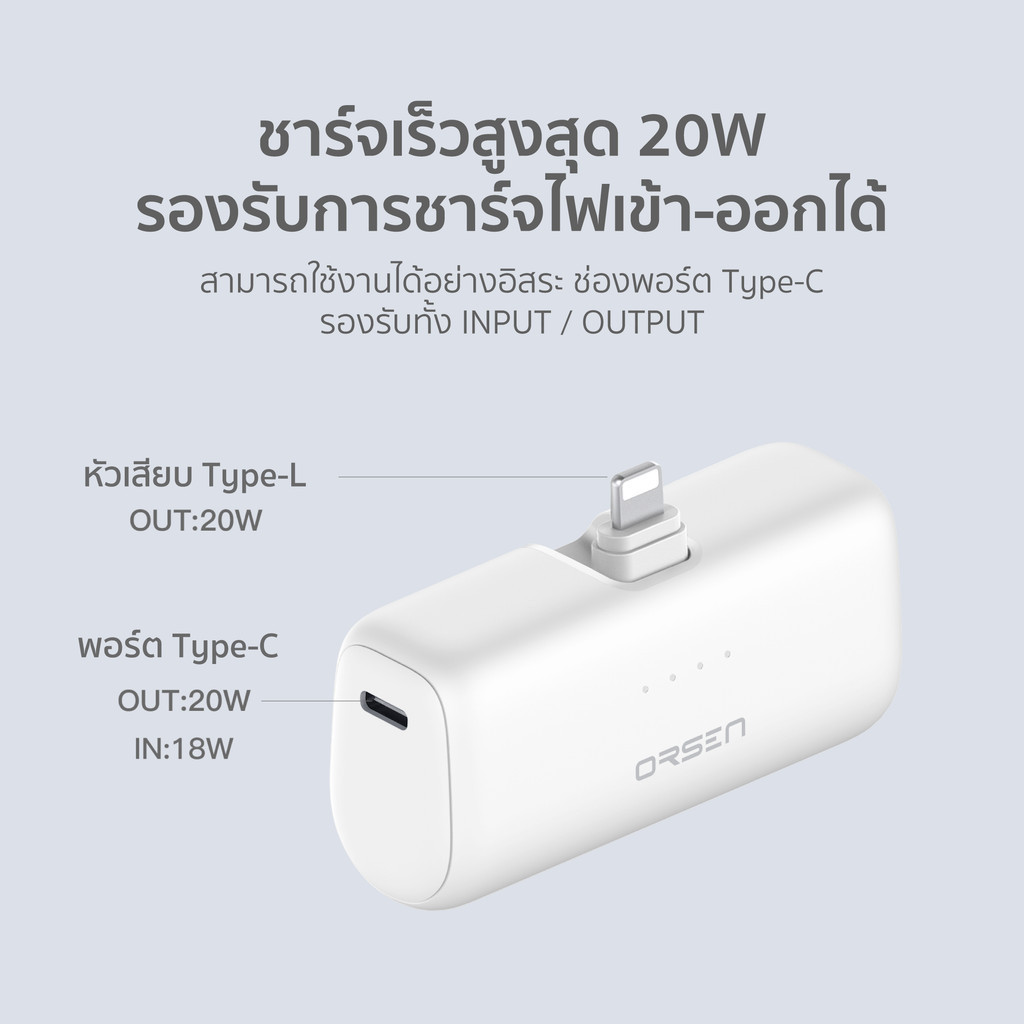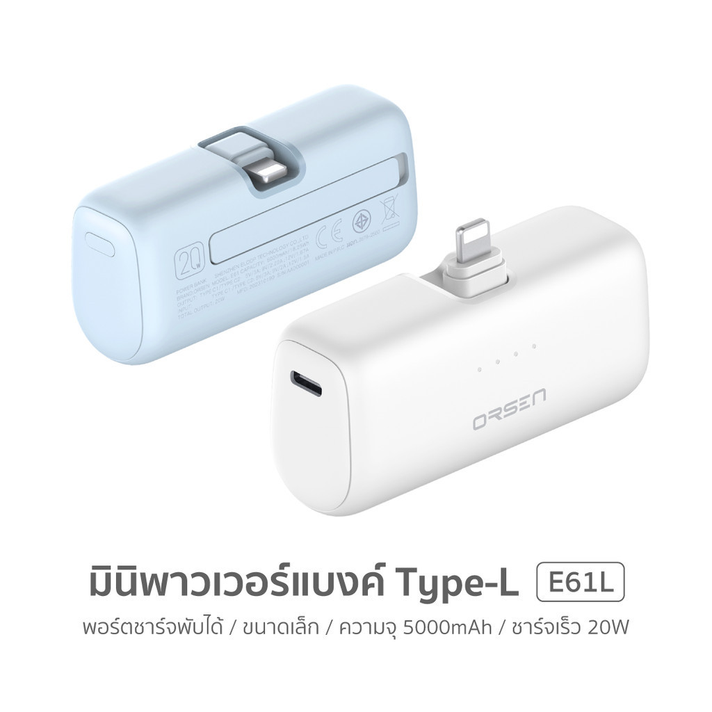 [577บ.สุดคุ้ม] Orsen by Eloop E61 แบตสำรอง 5000mAh 20W Powerbank Fast Charge พาวเวอร์แบงค์ Type C / L