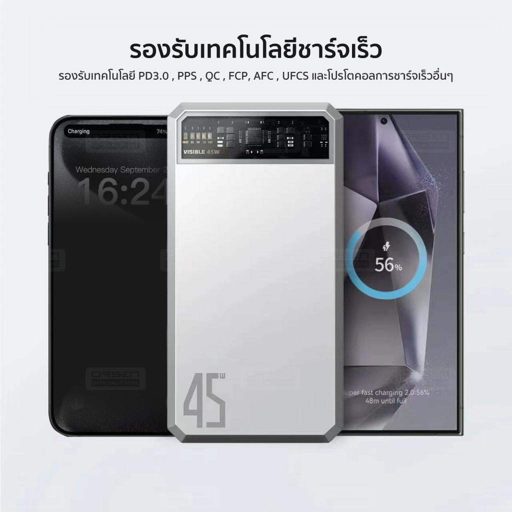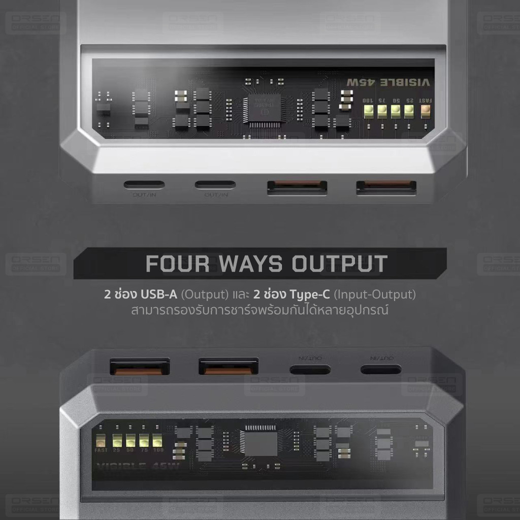 [1089บ.โค้ดคุ้ม] Orsen by Eloop E43 แบตสำรอง 25000mAh QC 3.0 PD 45W Max PowerBank Type C Output พาวเวอร์แบงค์