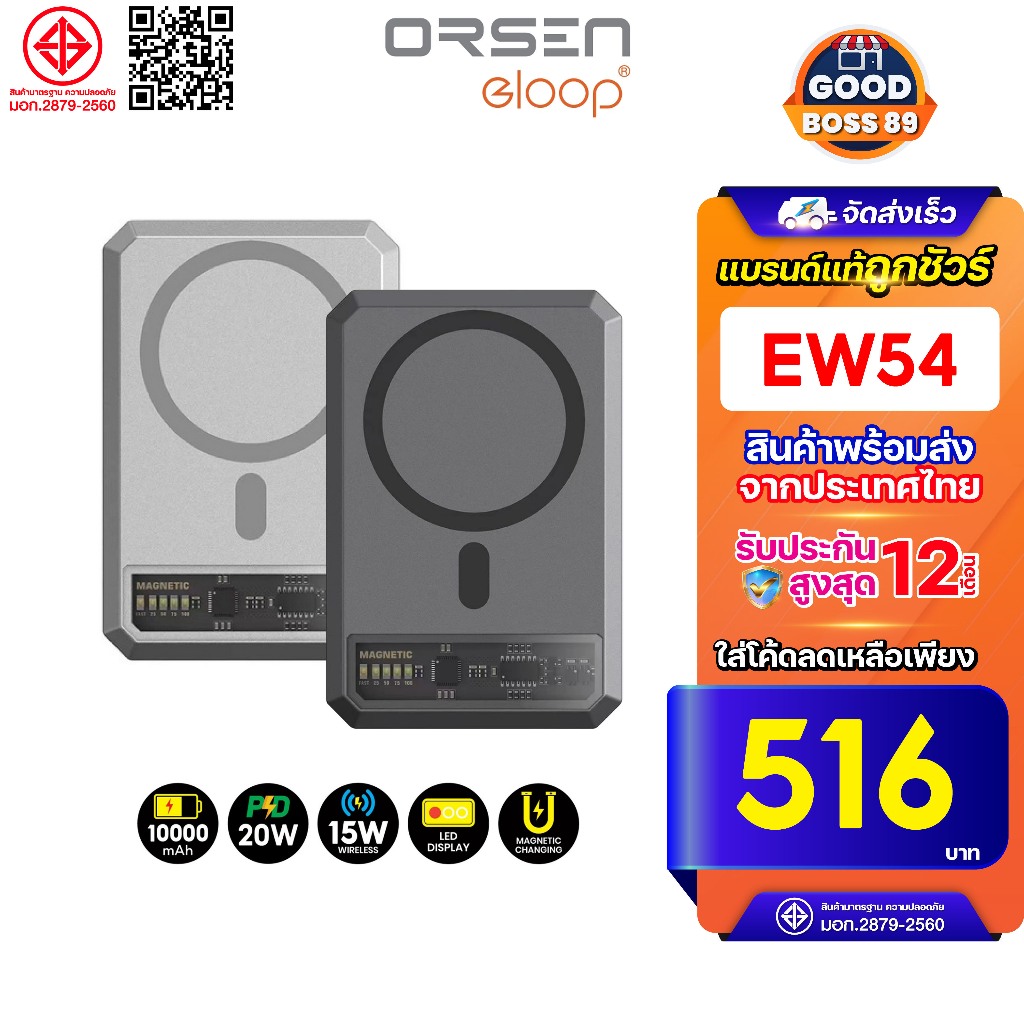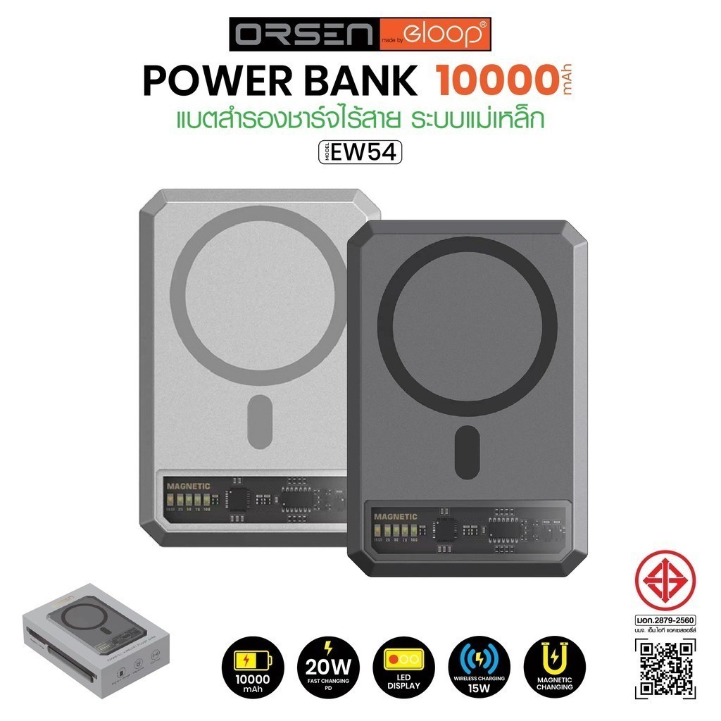 [516บ. โค้ดคุ้ม] Orsen Eloop EW54 สีเทา Mag Charge 10000mAh แบตสำรองไร้สาย พาวเวอร์แบง Power bank