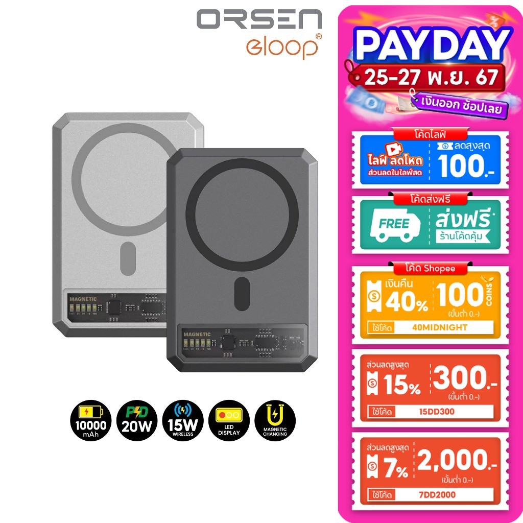 [479บ.ช้อปคุ้ม] Orsen by Eloop EW52 MagCharge Magnetic 10000mAh แบตสำรองไร้สาย PowerBank Wireless