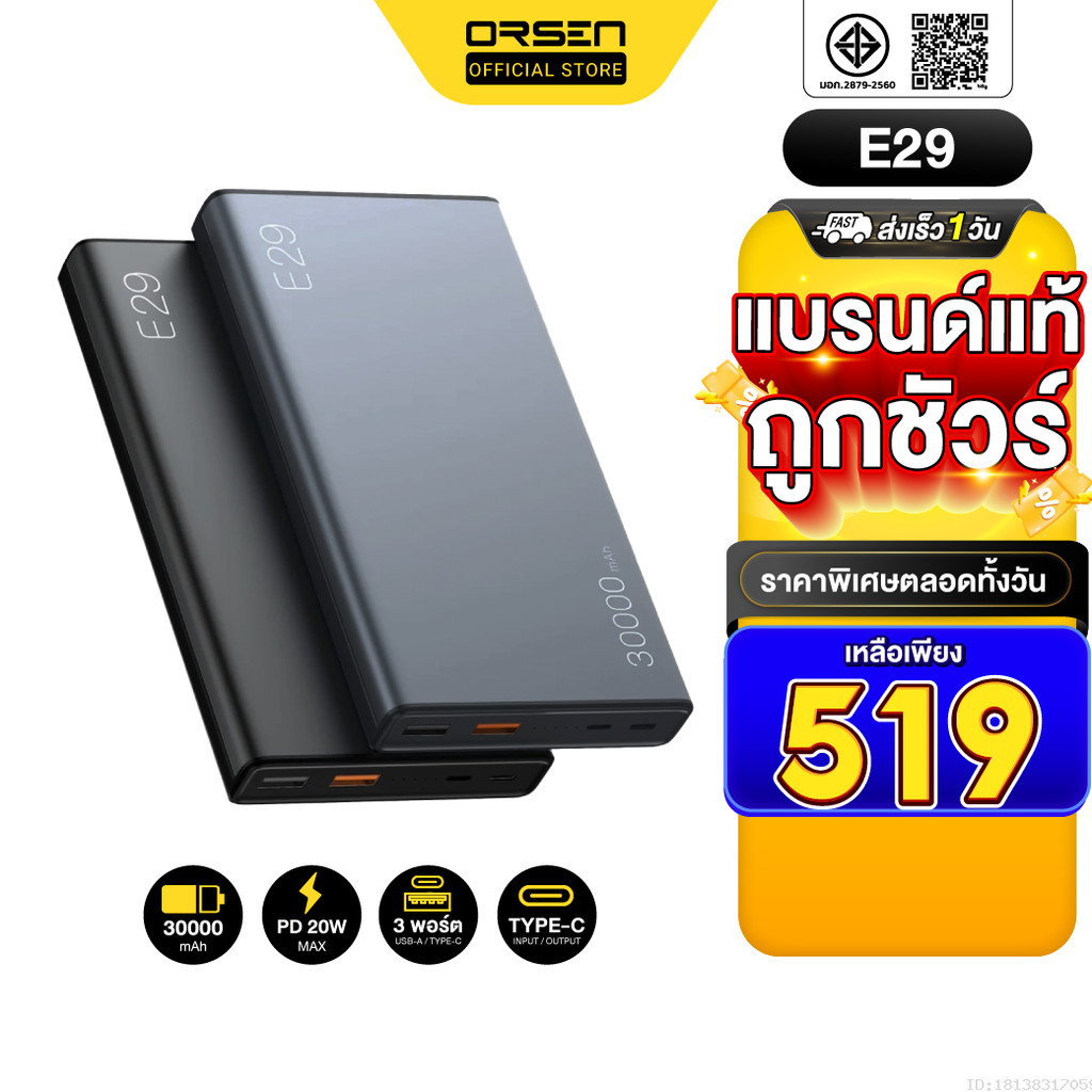 [519บ.โค้ดคุ้ม] Orsen by Eloop E29 30000mAh / E37 22000mAh / E36 12000mAh แบตสำรอง 18W ชาร์จเร็ว Power Bank