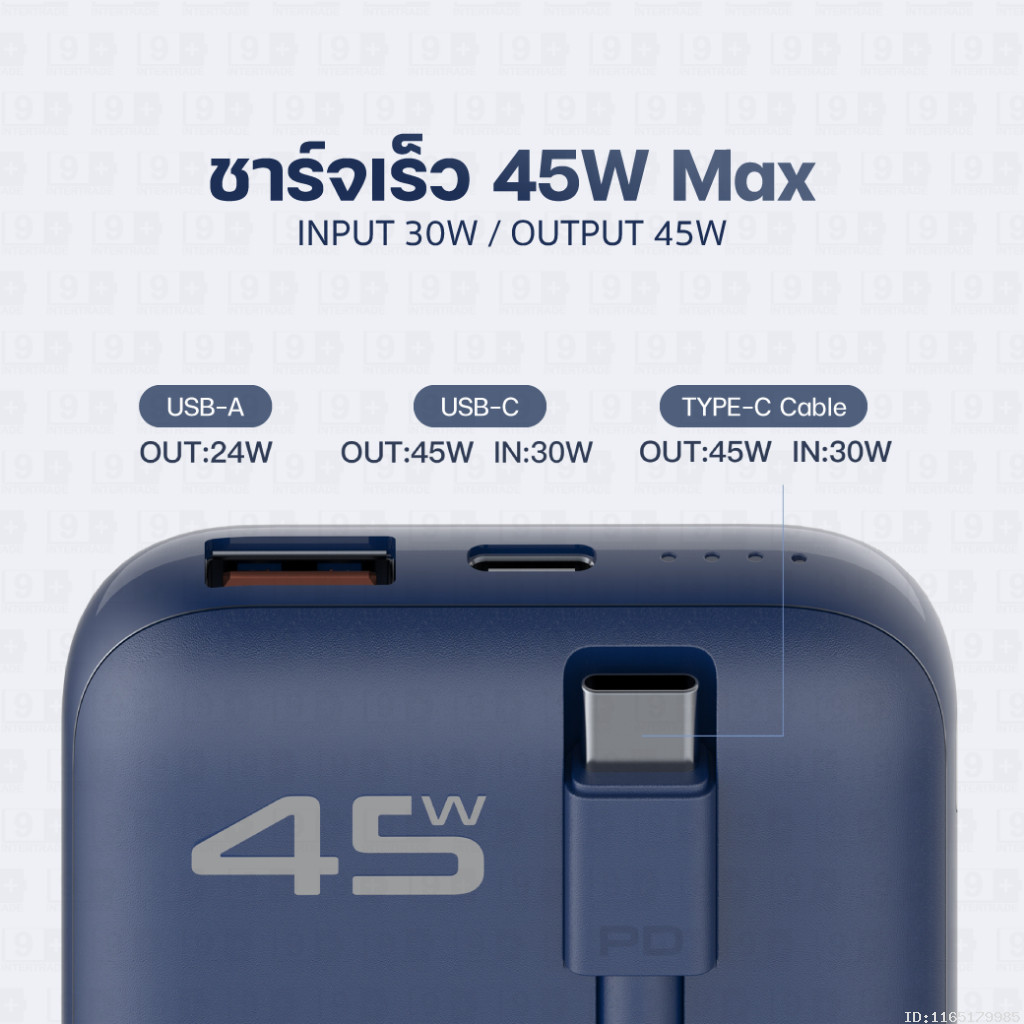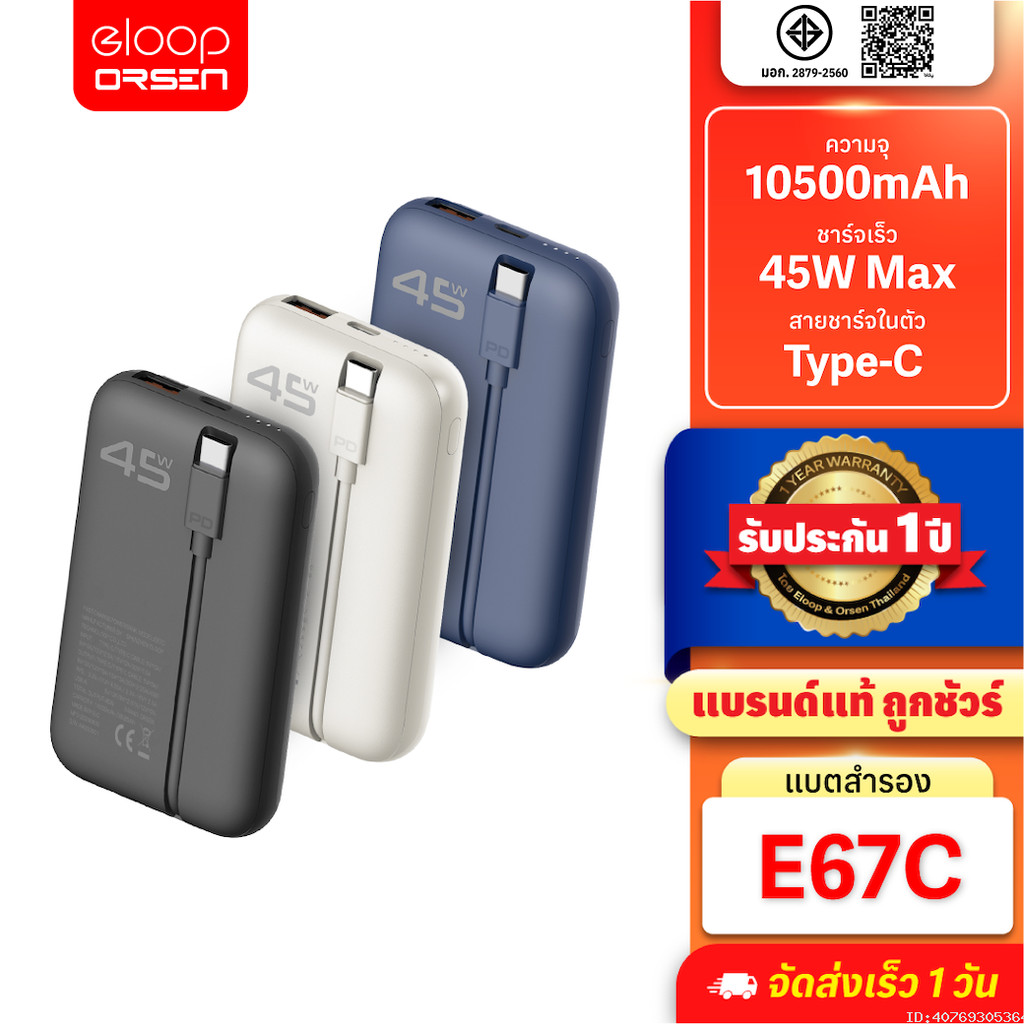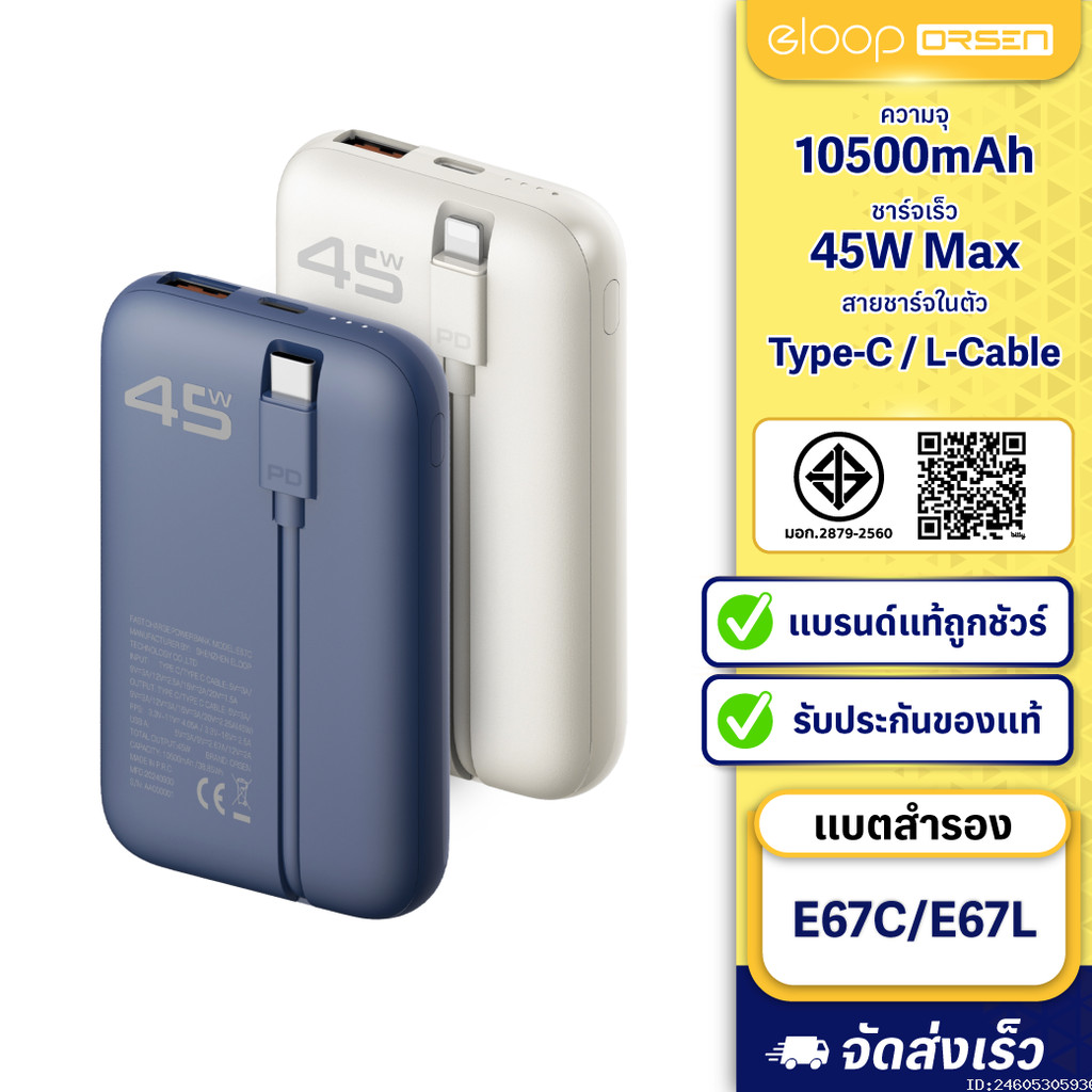 [710บ.ช้อปคุ้ม] Orsen by Eloop E67C E67L แบตสำรอง 10500mAh PowerBank ชาร์จเร็ว PD 45W สายในตัว Type-C L-Cable
