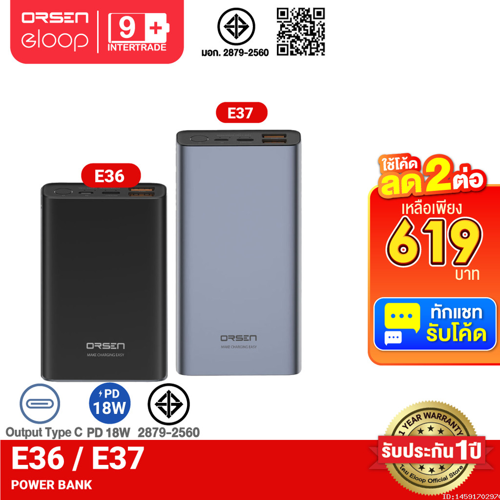 [619บ.สุดคุ้ม] Orsen by Eloop E37 22000mAh / E36 12000mAh แบตสำรอง QC3.0 PD 20W ชาร์จเร็ว Power Bank ของแท้